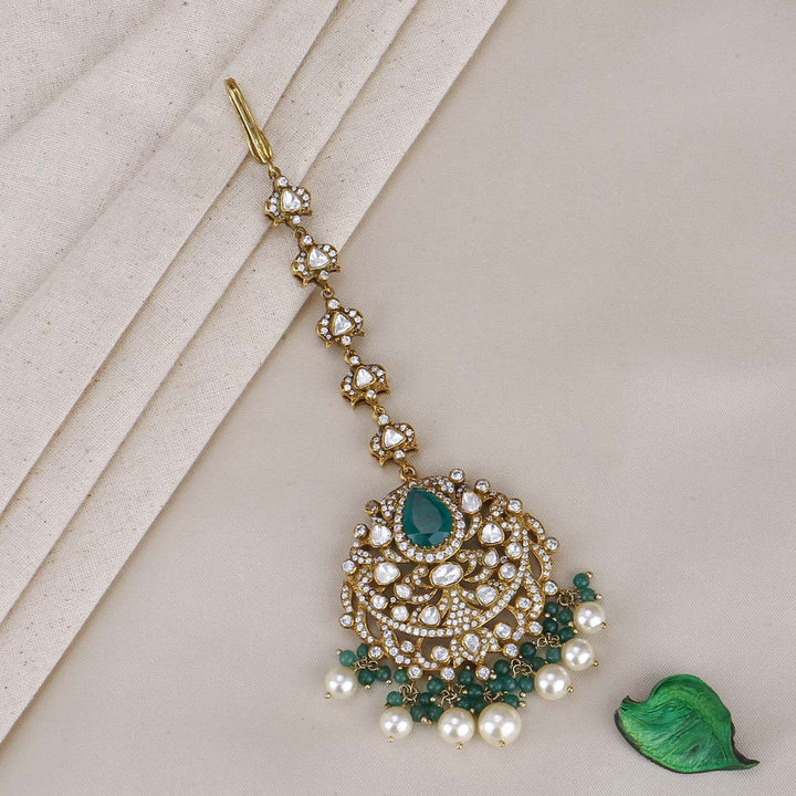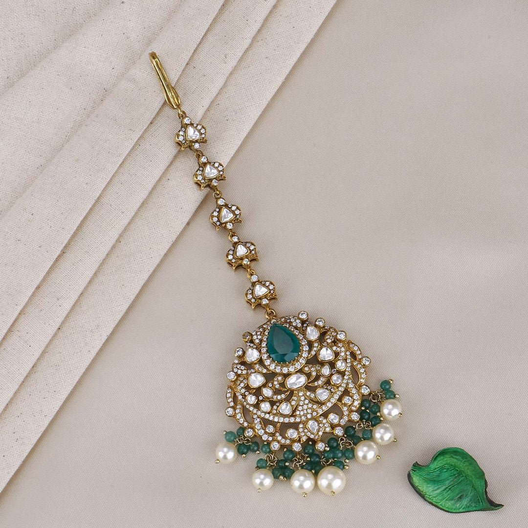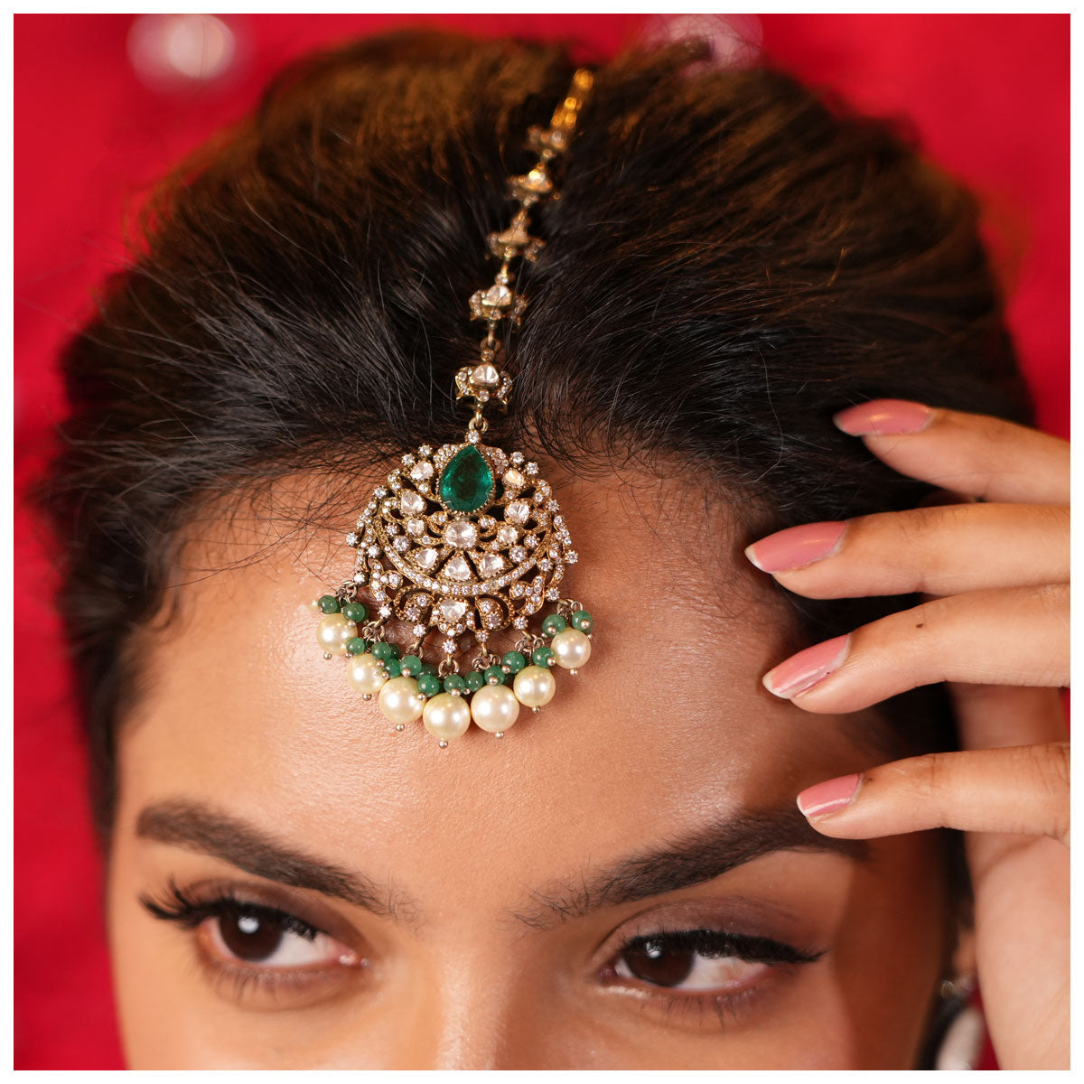 92.5 Silver, Victorian Maangtikka studded with Gem Stones.