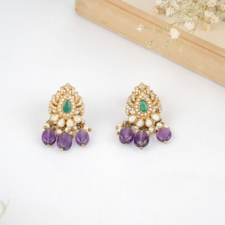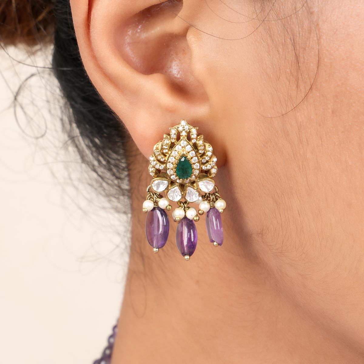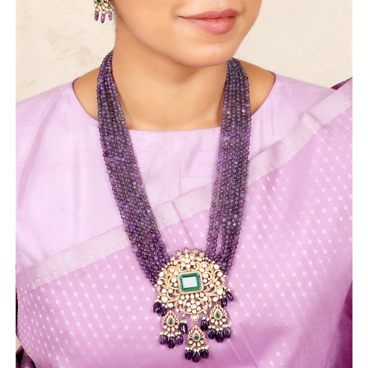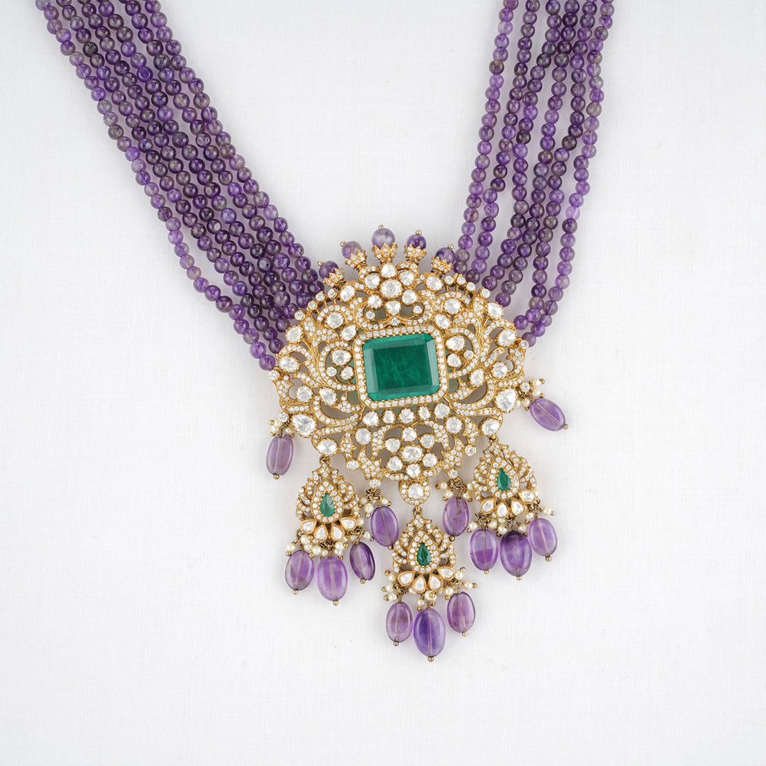 92.5 Silver, Victorian Necklace set studded with Gem Stones and Pearl Beads.