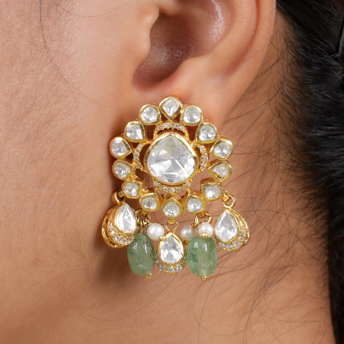 This 92.5 Silver, 24 kt gold-plated stylish Necklace set is studded with semi-precious stones to make a stunning statement. Perfect for any special occasion.