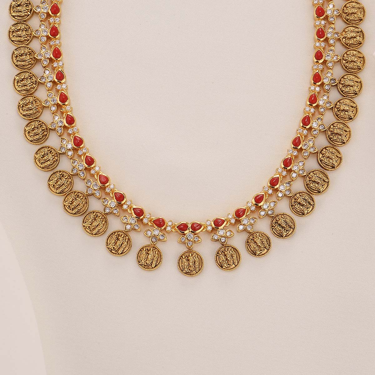 Crafted from 92.5 Silver and 24kt Gold Plated, this elegant Nagas Necklace Set features stunning semi-precious stones for a truly dazzling effect. Its unique design and exquisite style will undoubtedly make a grand impression.