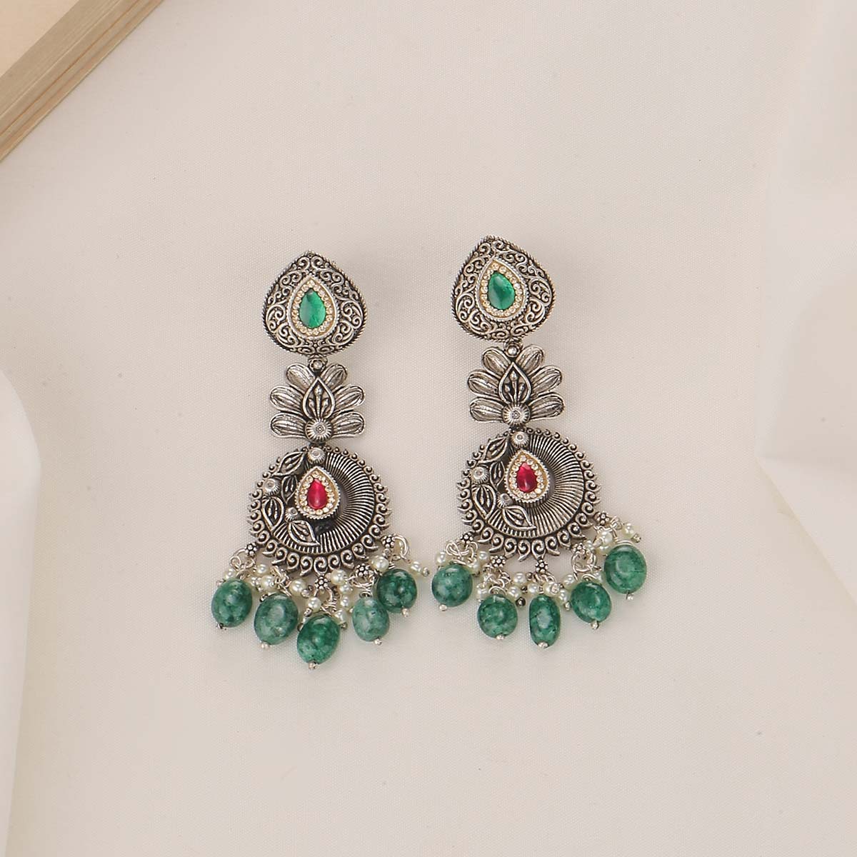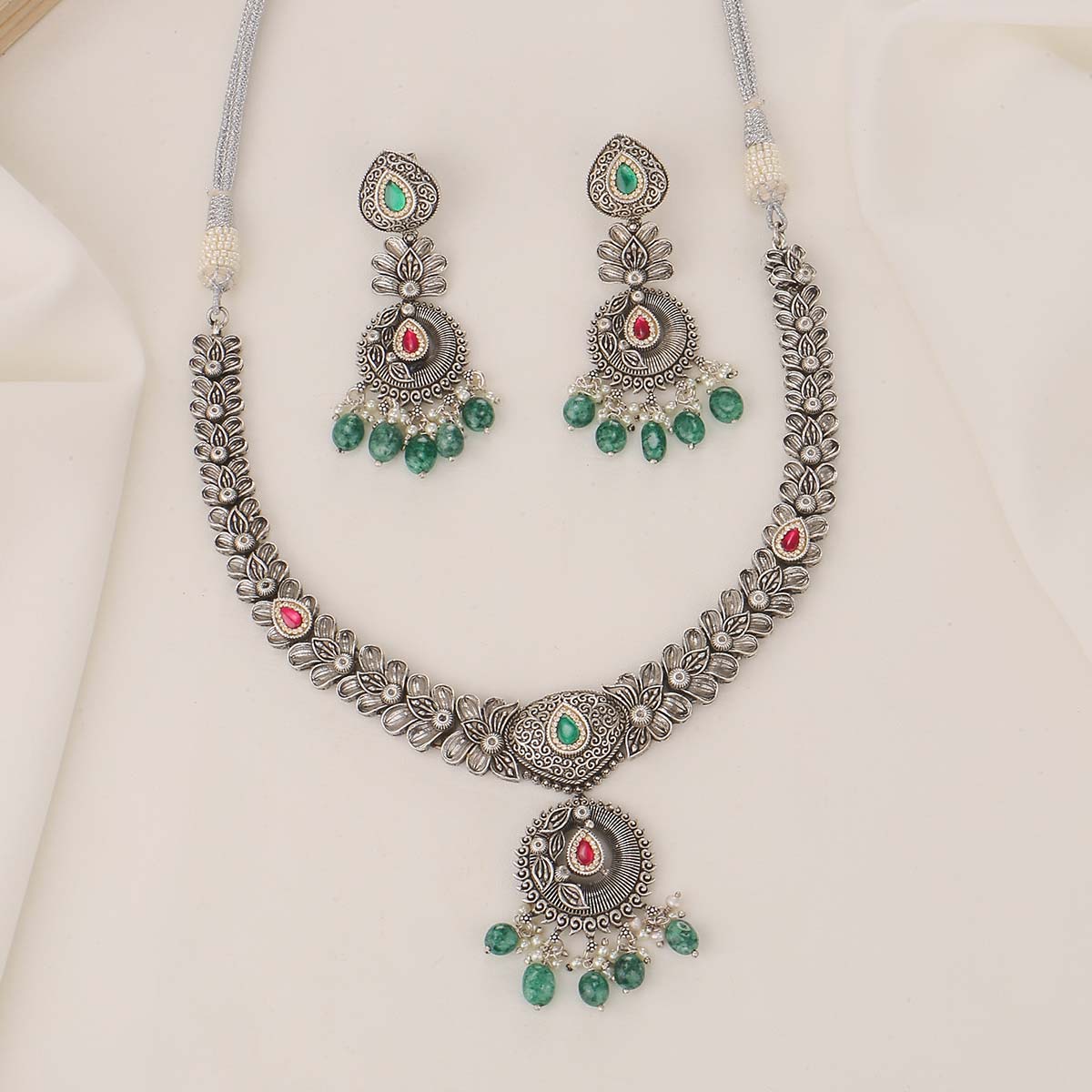 92.5 silver oxidized Necklace Set, Studded with Semi-Precious Stones.