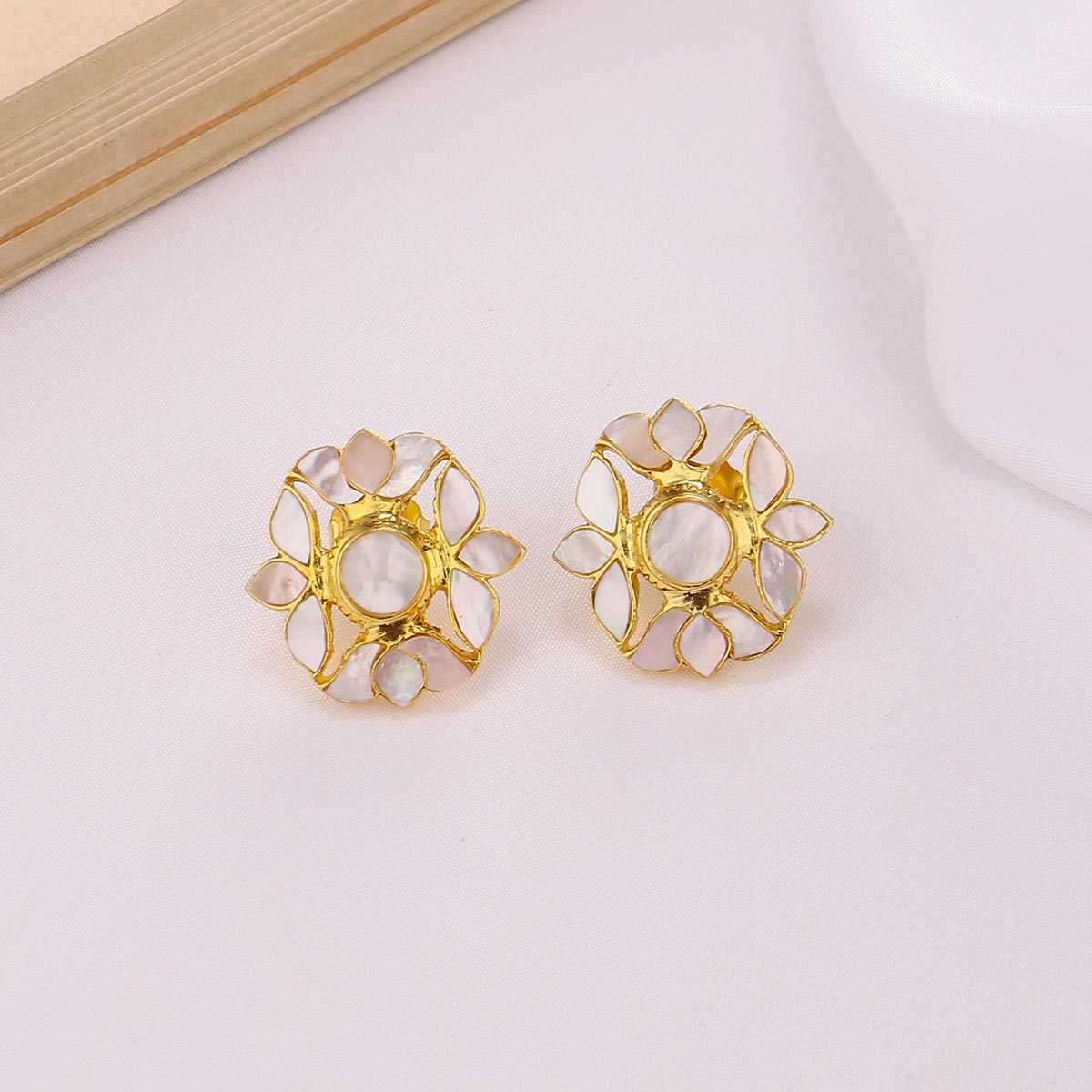 92.5 Silver,22kt Gold Plated Mother of Pearl Choker Set studded with Kundan Stones.