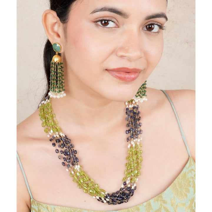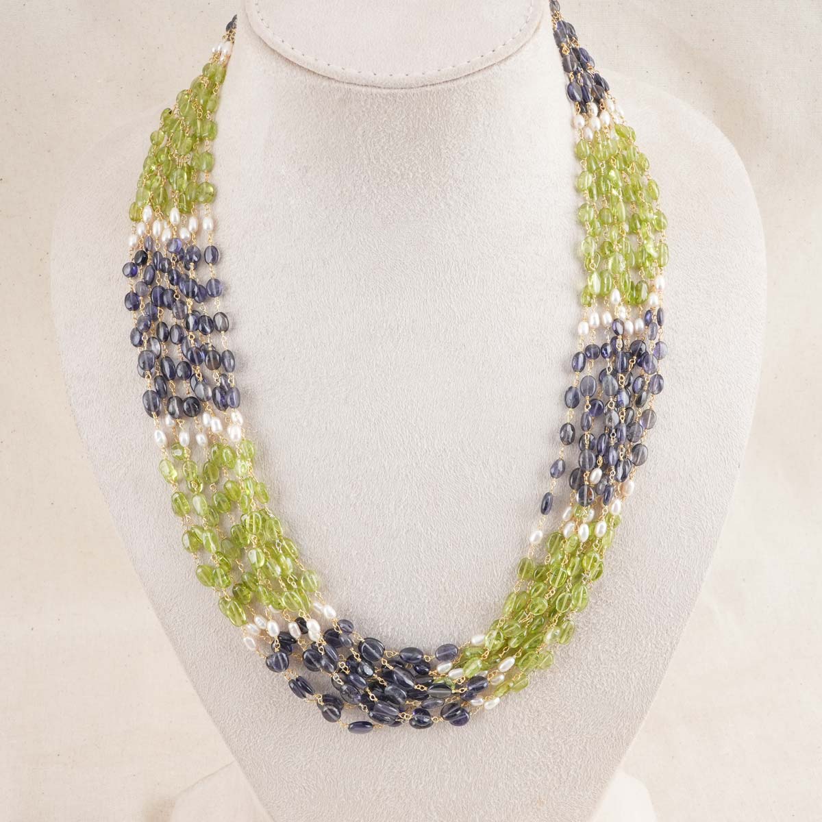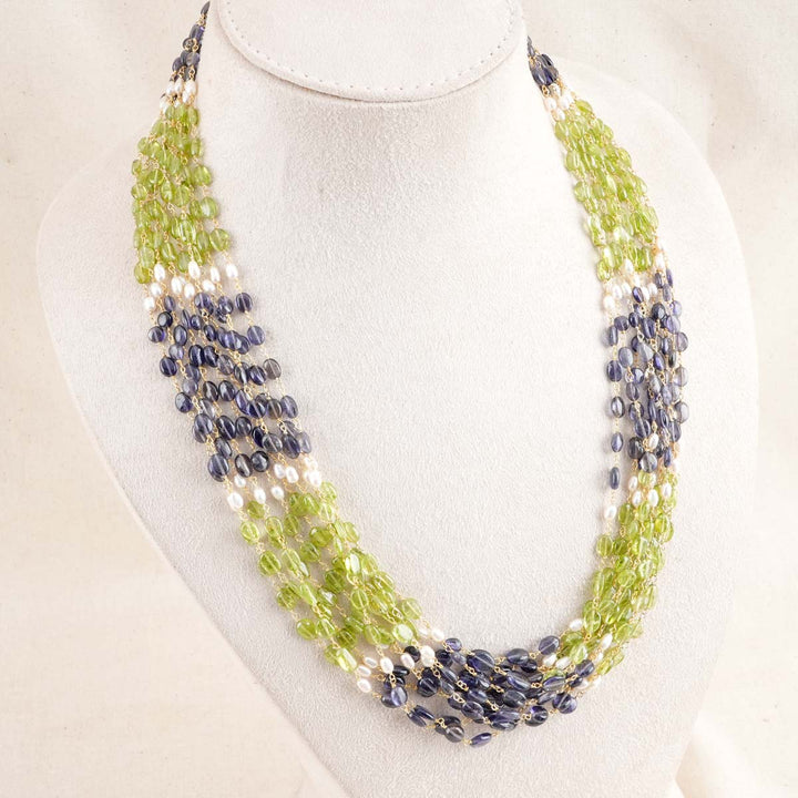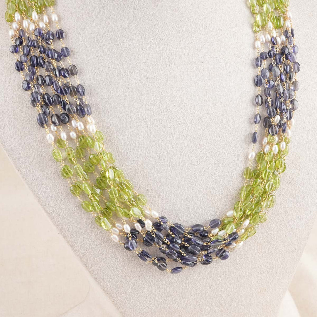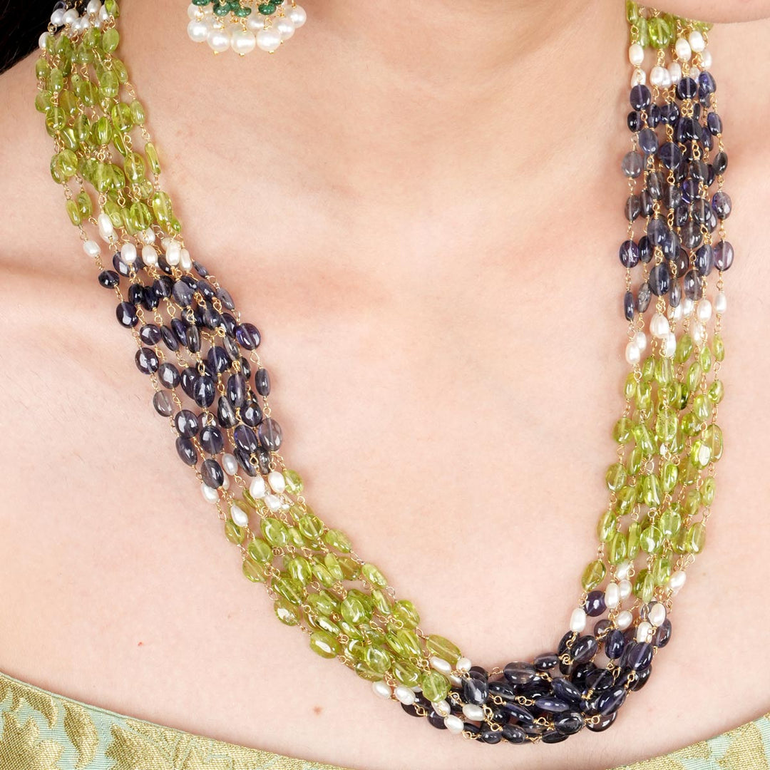 The Necklace/chain has real precious and natural beads and is stung on 92.5 gold-plated silver.