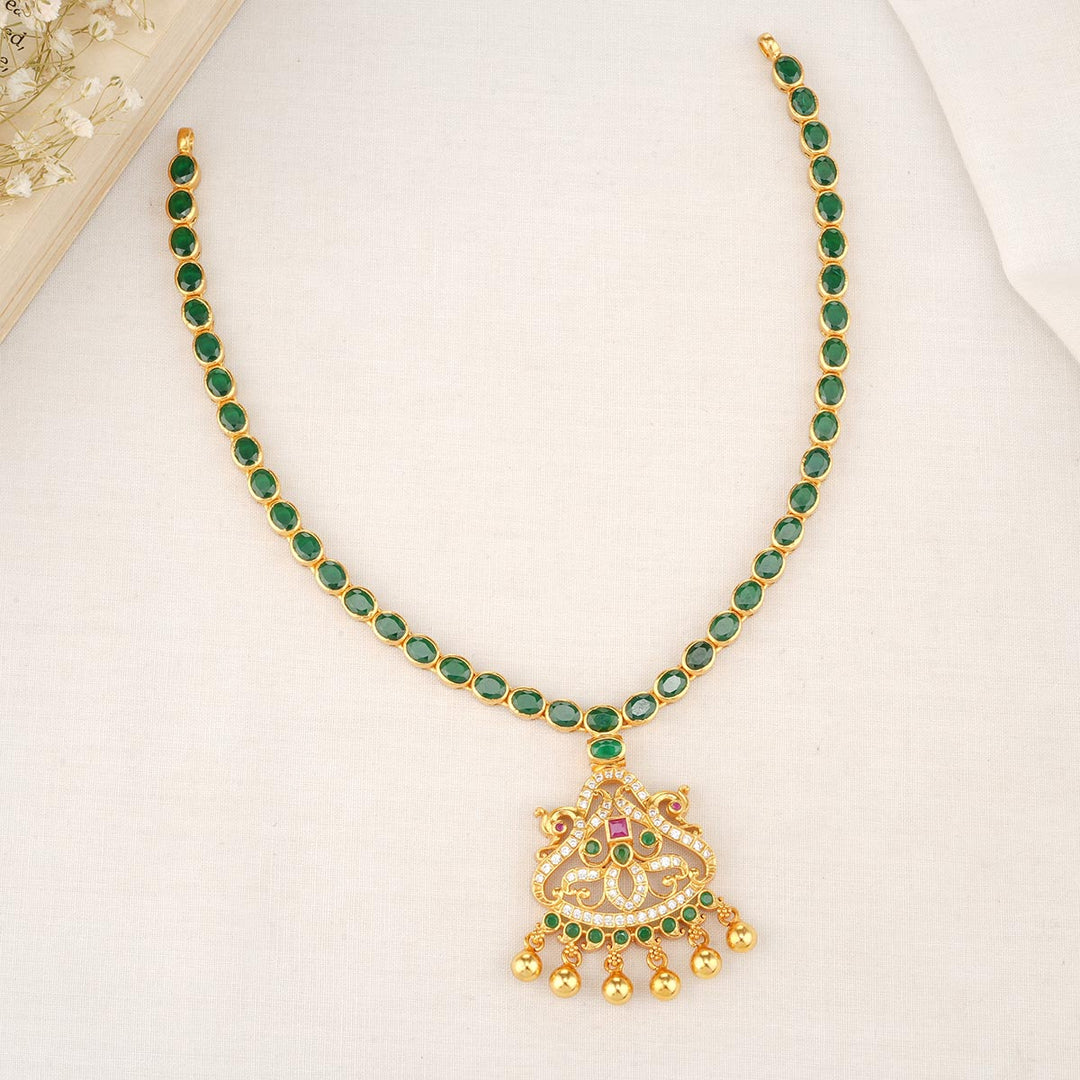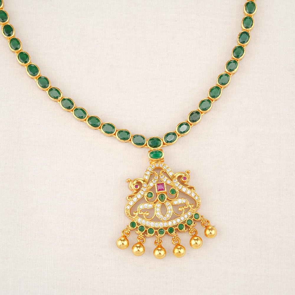 This 92.5 Silver, 24 kt gold-plated stylish Necklace is studded with semi-precious stones to make a stunning statement. Perfect for any special occasion.