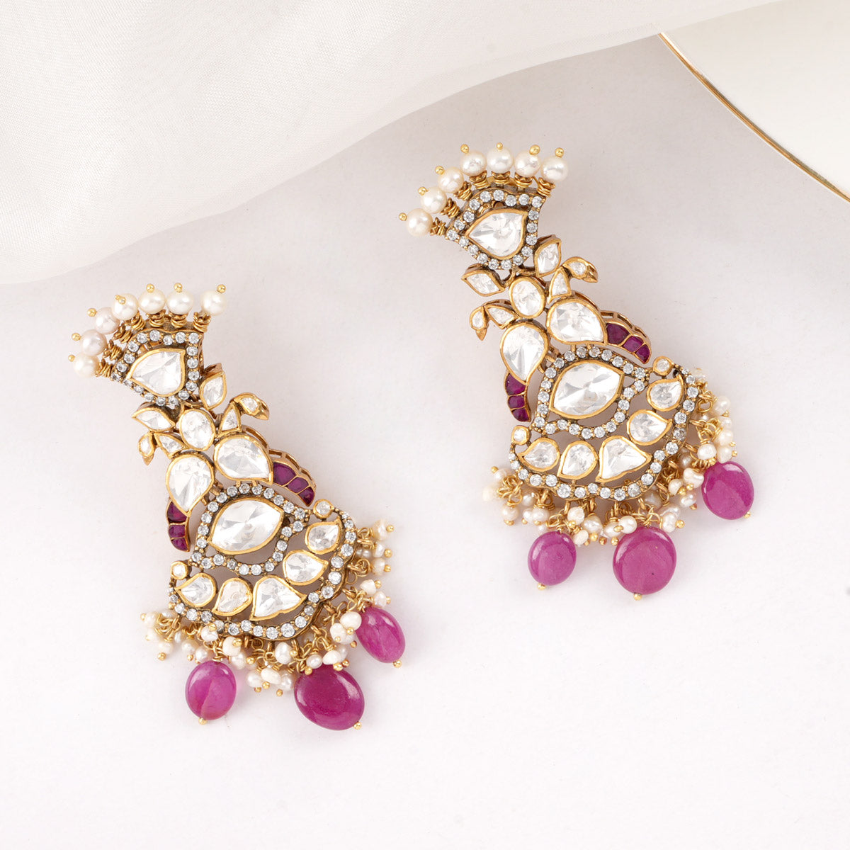 This 92.5 Silver, 24 kt gold-plated stylish Necklace set is studded with semi-precious stones to make a stunning statement. Perfect for any special occasion.