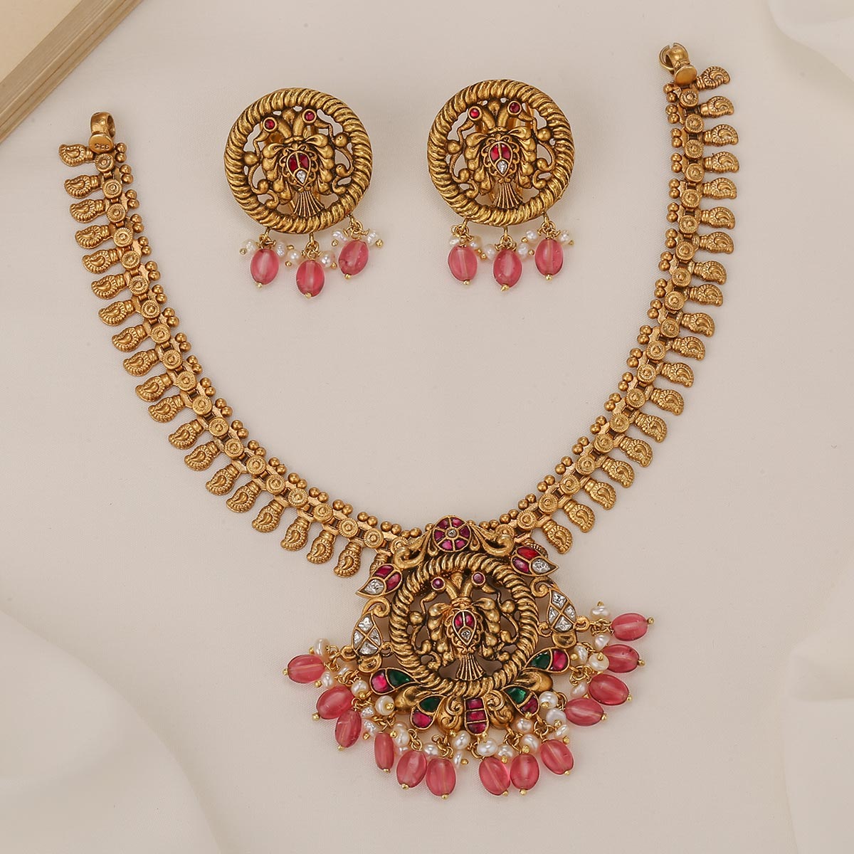 Constructed from 92.5 Silver, this 24kt Gold Plated Necklace set is decorated with stunning Mother of Pearls for a luxe finish.