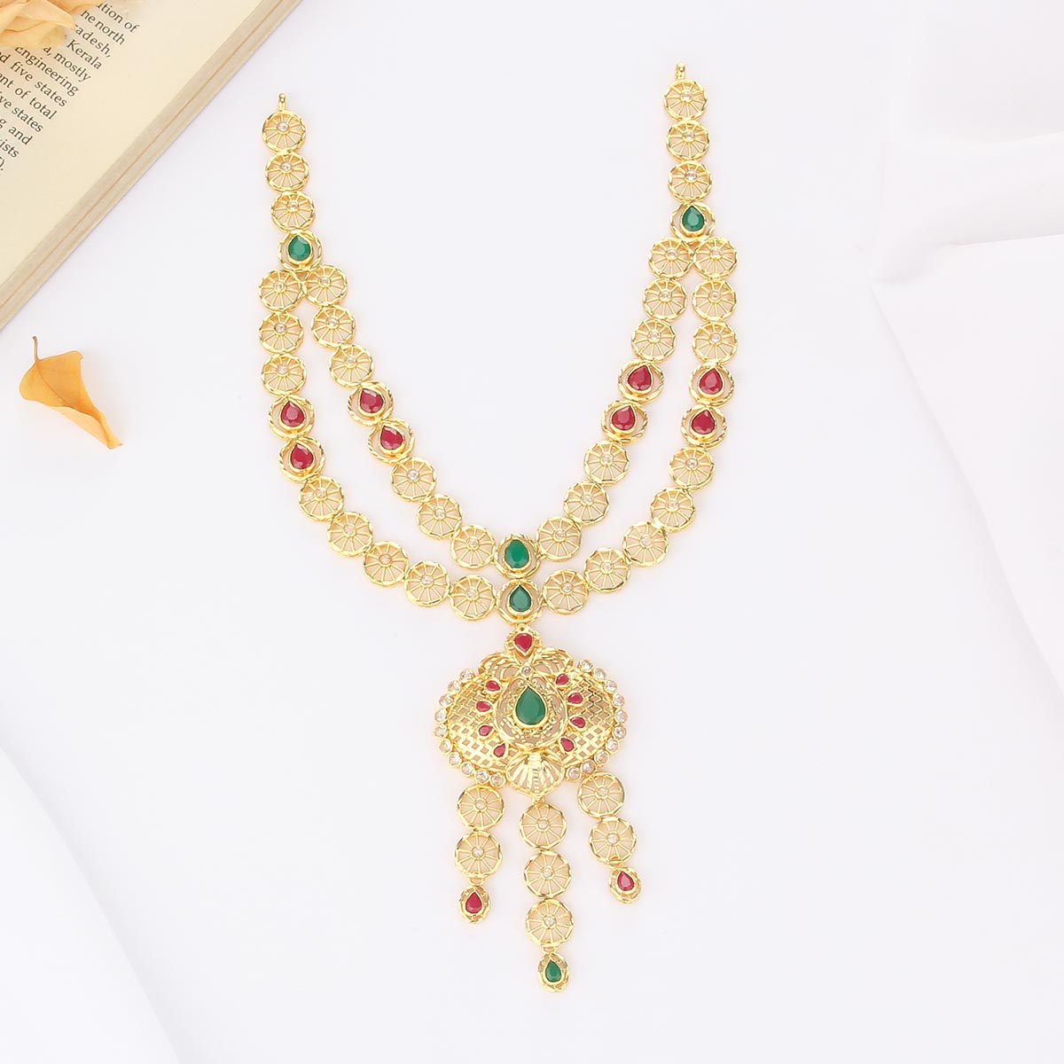 This 92.5 Silver, 24 kt Gold-Plated Short Necklace is adorned with Semi-precious Stones for a luxurious aesthetic.