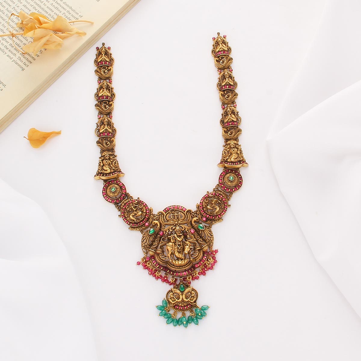 Elevate your style with this Majestic Look Nagas necklace. Crafted from 92.5 Silver and 24kt gold-plated, this set boasts exquisite semi-precious stones for a dazzling effect.