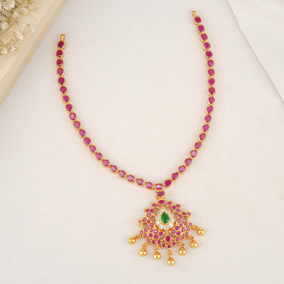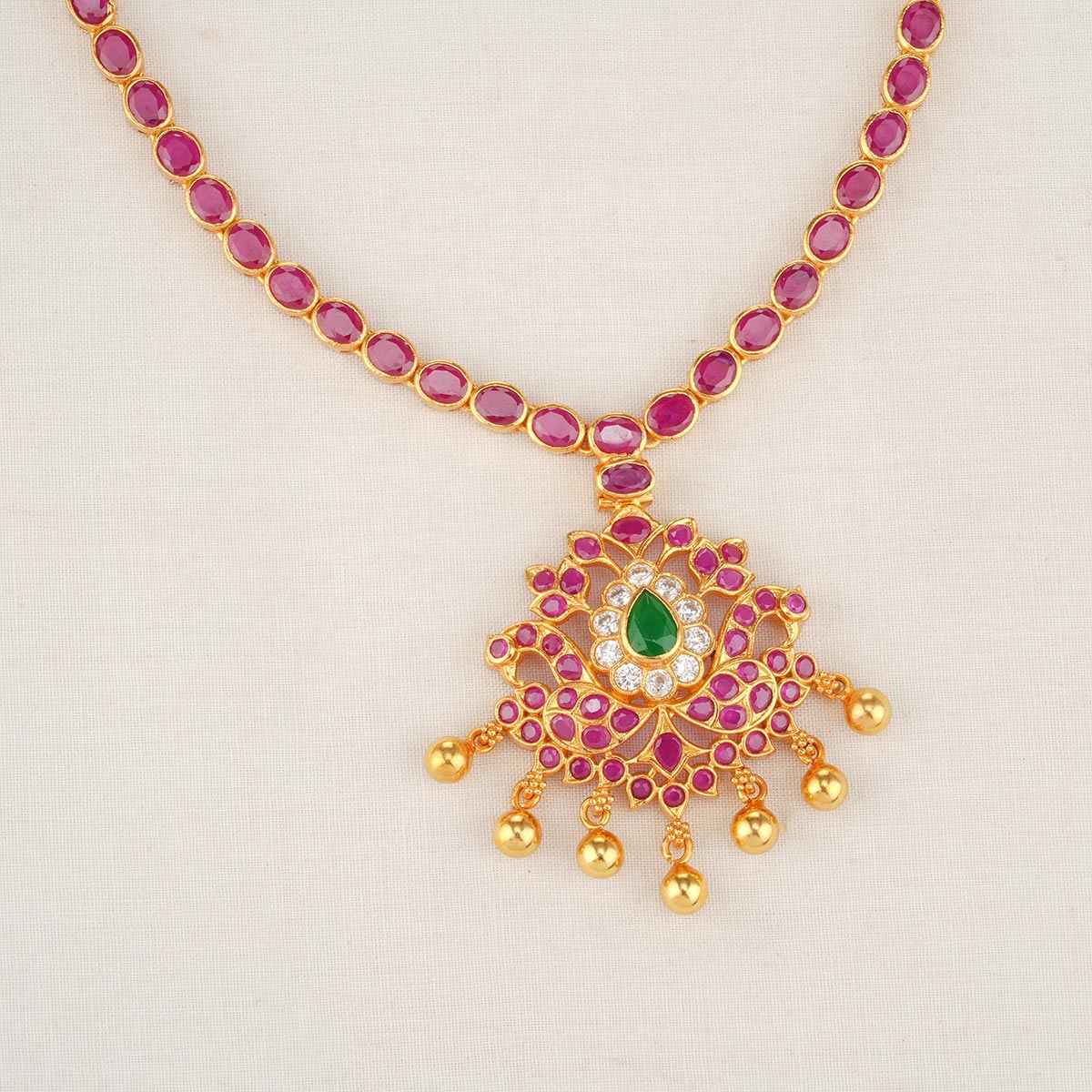 This 92.5 Silver, 24 kt gold-plated stylish Necklace is studded with semi-precious stones to make a stunning statement. Perfect for any special occasion.
