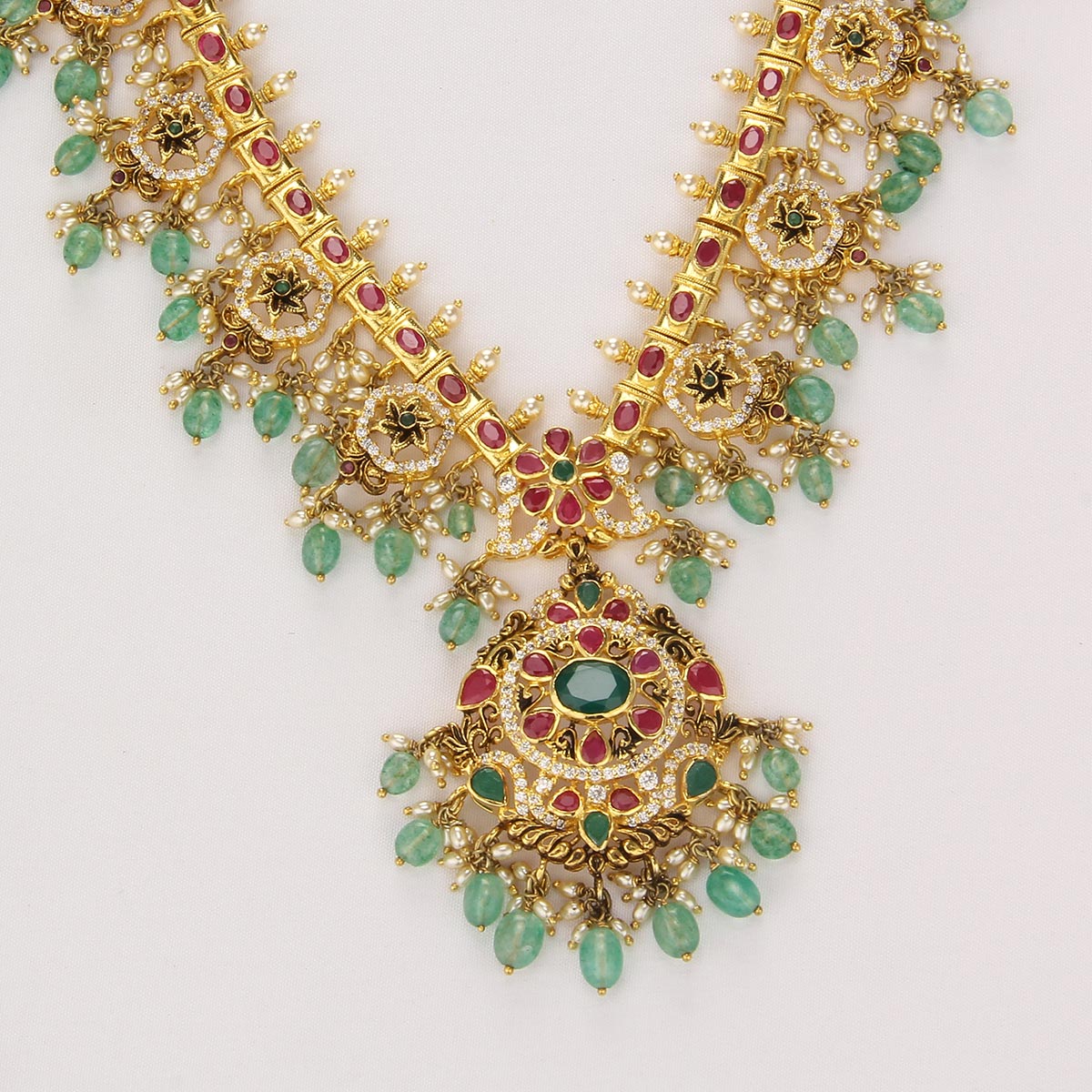 This 92.5 Silver, 24 kt Gold-Plated Short Necklace  is adorned with Semi-precious Stones for a luxurious aesthetic.