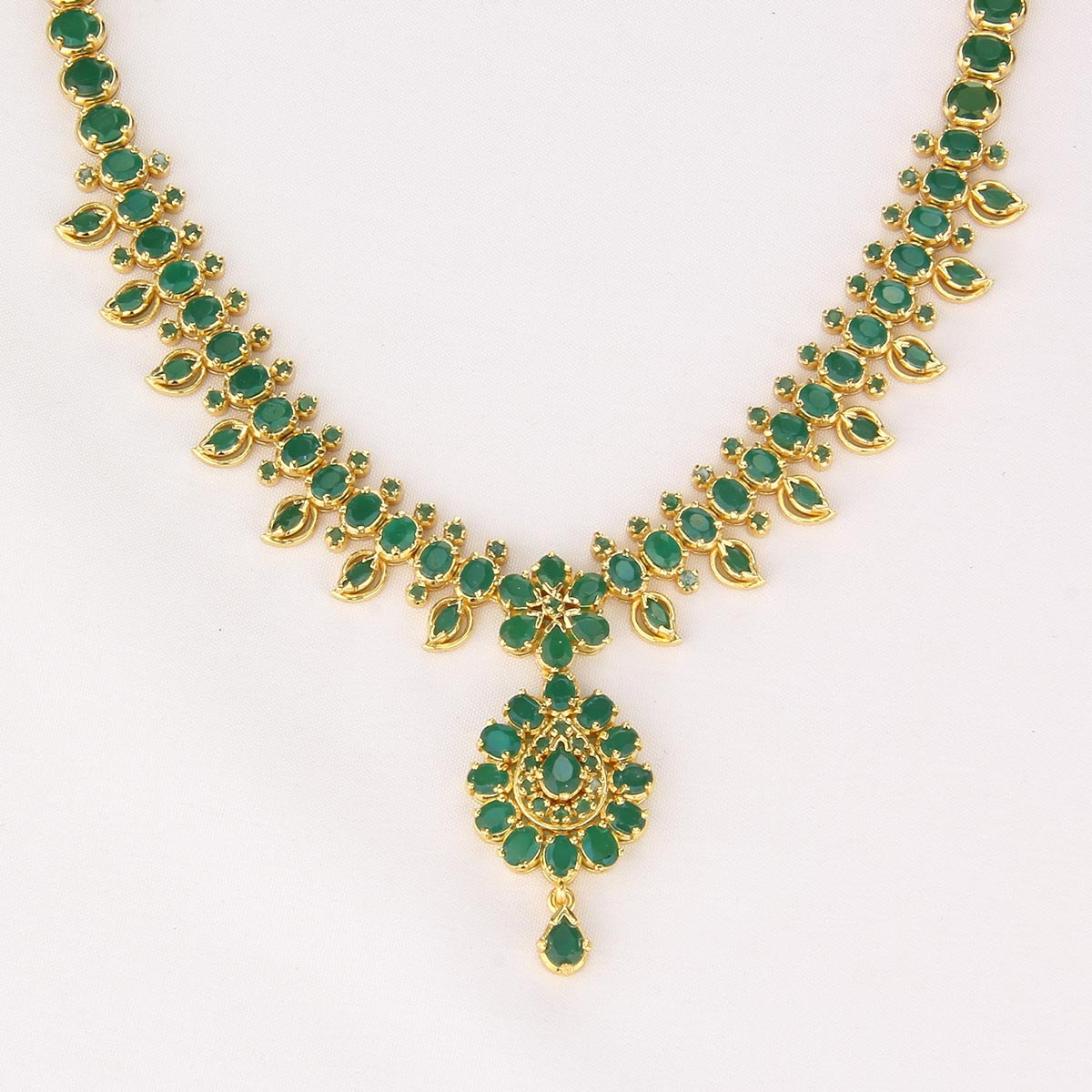 This 92.5 Silver, 24 kt Gold-Plated Short Necklace Set is adorned with Semi-precious Stones for a luxurious aesthetic.