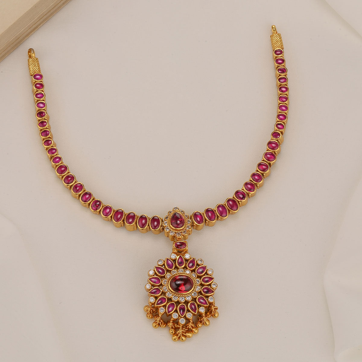 This 92.5 Silver, 24 kt gold-plated stylish Reversible Necklace is studded with semi-precious stones to make a stunning statement. Perfect for any special occasion.