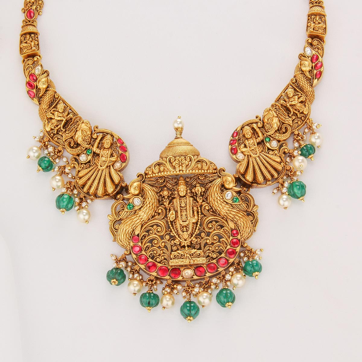 Elevate your style with this Majestic Look Nagas necklace. Crafted from 92.5 Silver and 24kt Gold Plated, this set boasts exquisite semi-precious stones for a dazzling effect.