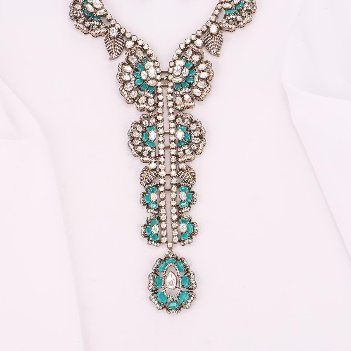 92.5 Silver, Victorian Necklace set studded with Gem Stones