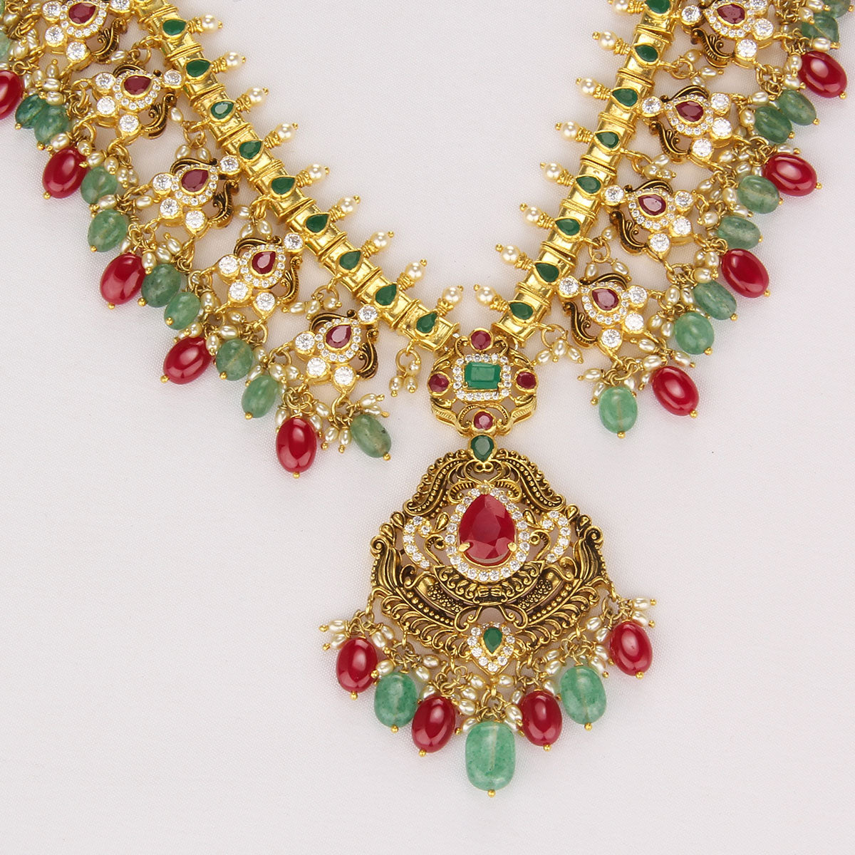 This 92.5 Silver, 24 kt Gold-Plated Short Necklace is adorned with Semi-precious Stones for a luxurious aesthetic.