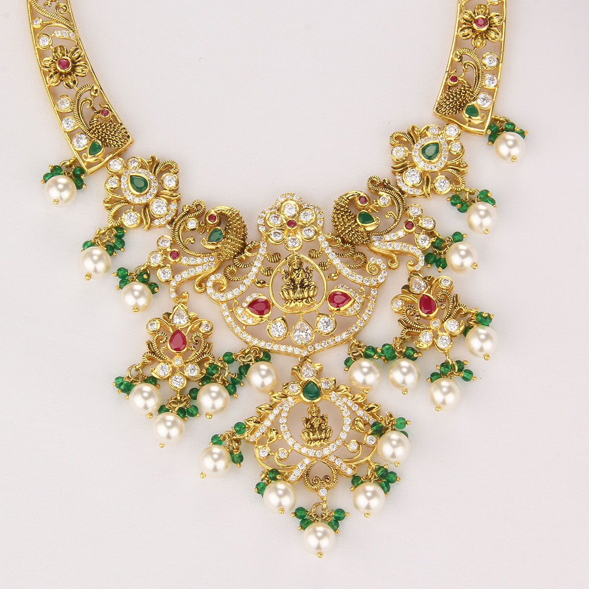 This 92.5 Silver, 24 kt Gold-Plated Short Necklace is adorned with Semi-precious Stones for a luxurious aesthetic.