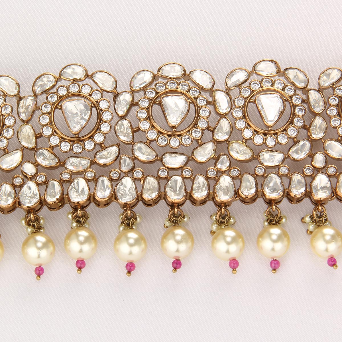 92.5 Silver, Victorian Choker studded with Gem Stones and Pearl Beads.