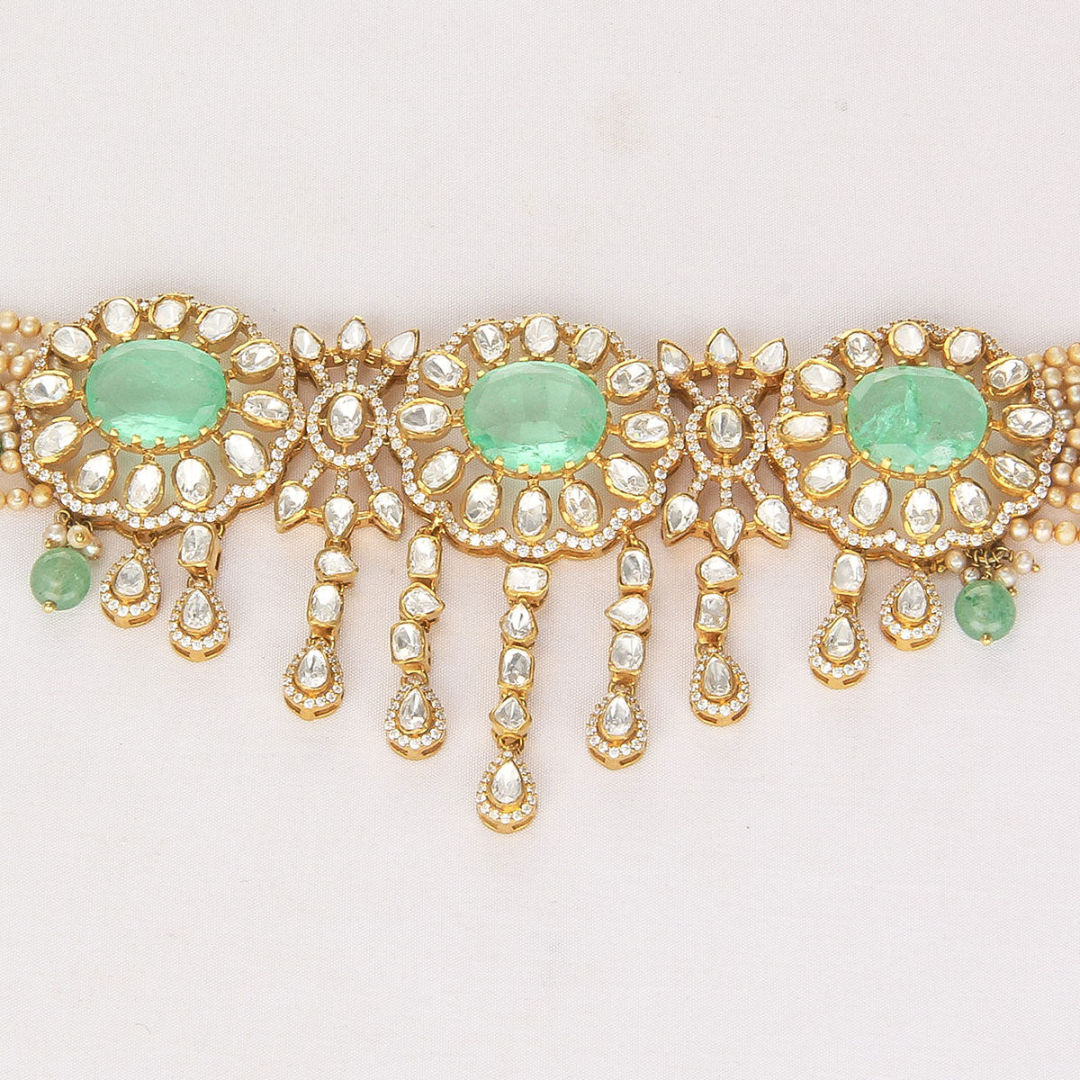 92.5 Silver, 24kt Gold Plated Choker Studded with Moissanite stones.