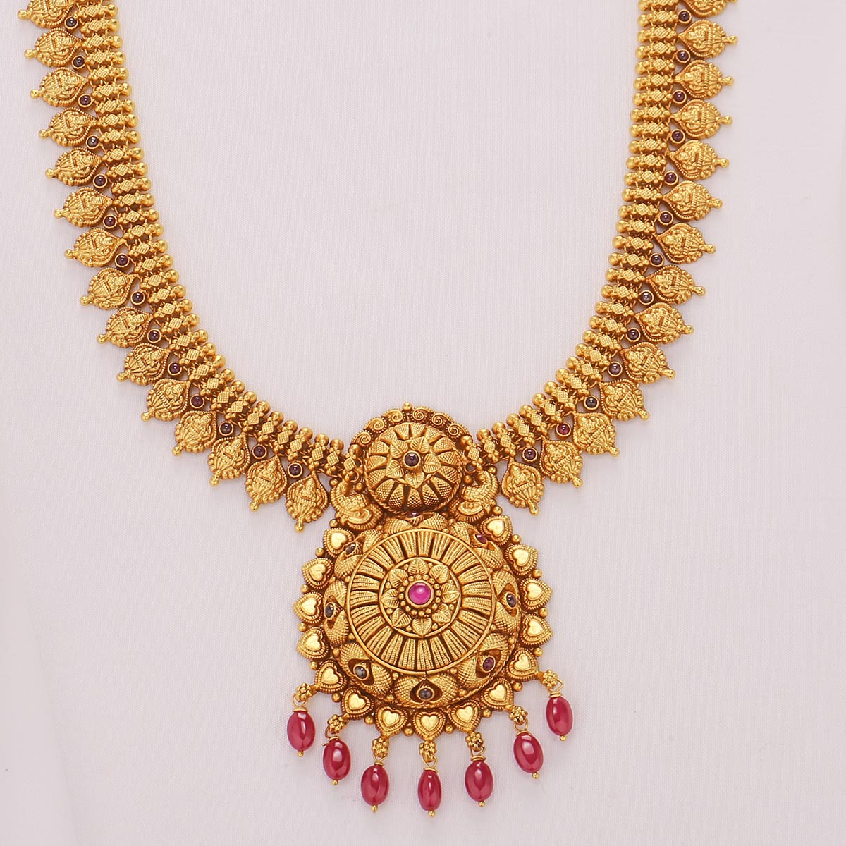 This necklace is crafted from 92.5 Sterling Silver and features 24-karat gold plating as well as semiprecious stones.