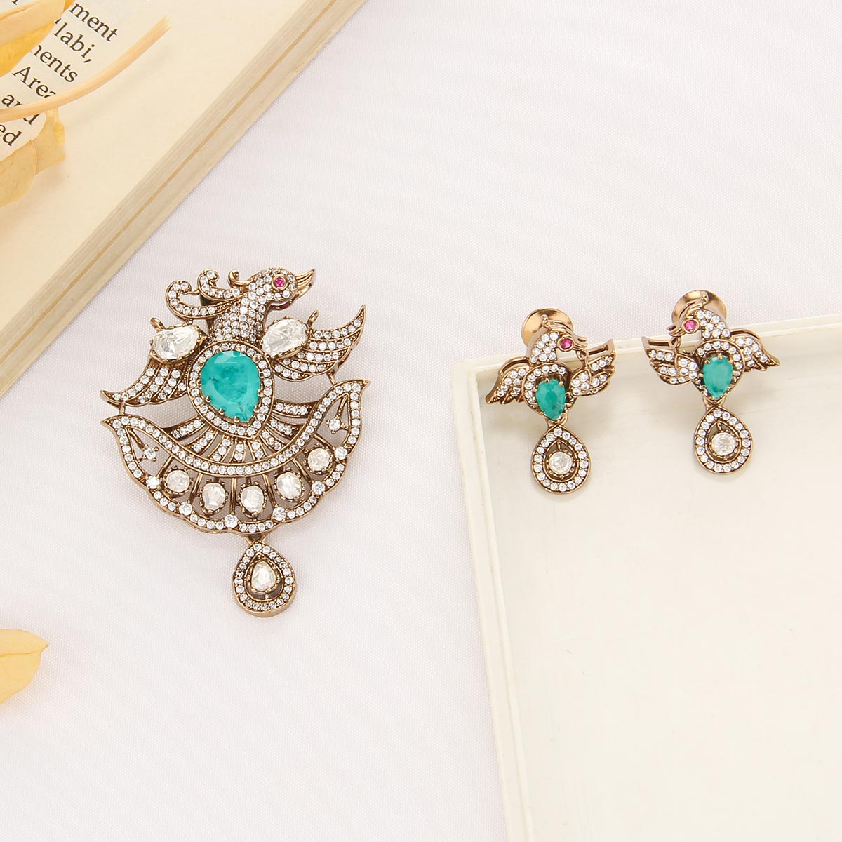 92.5 Silver, Victorian Pendant set studded with Gem Stones and Pearl Beads.