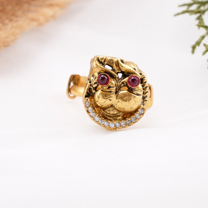 Enhance your fashion with the Nagas Ring. Designed with 92.5% silver and a luxurious gold plating, this ring beautifully displays semi-precious stones, adding an element of elegance.
