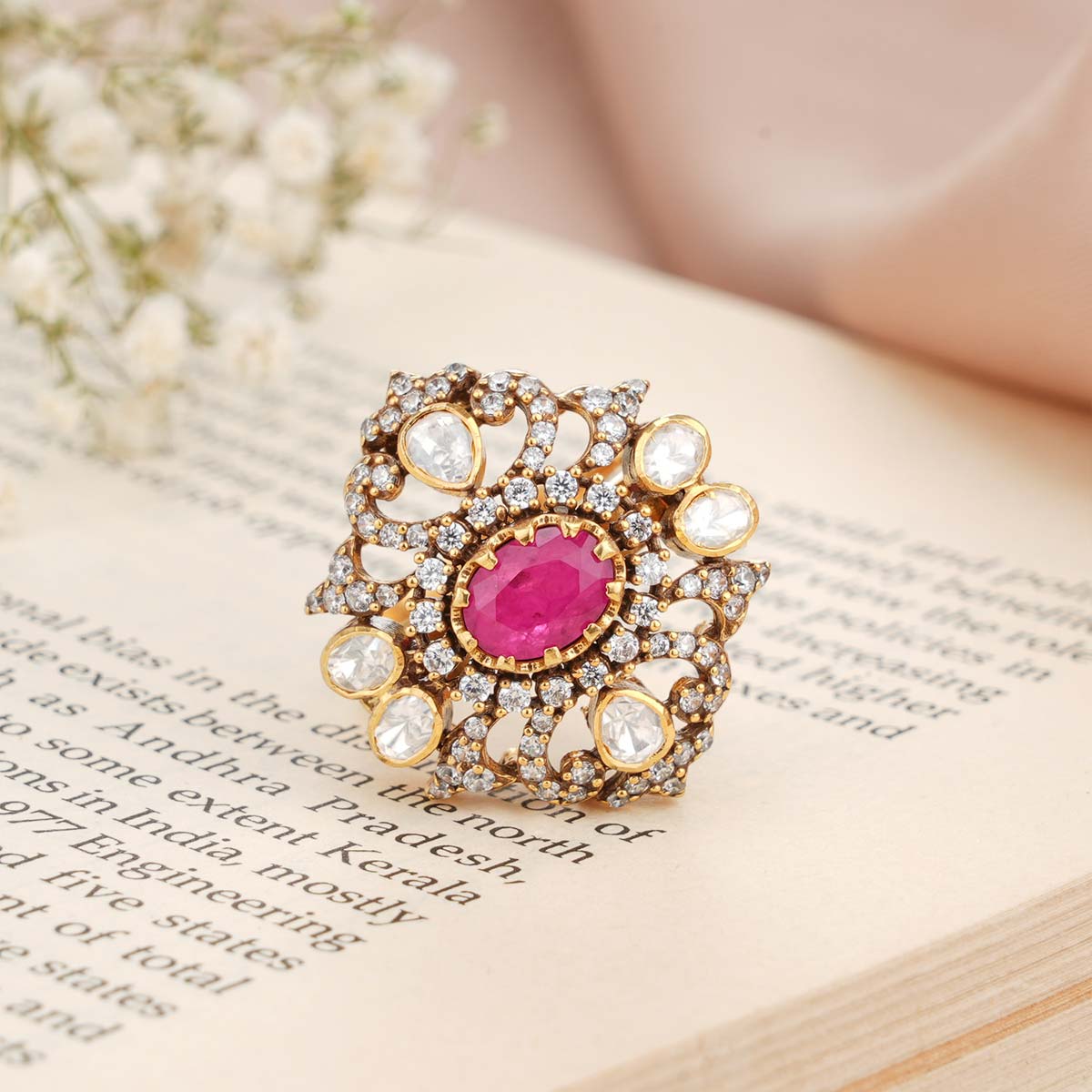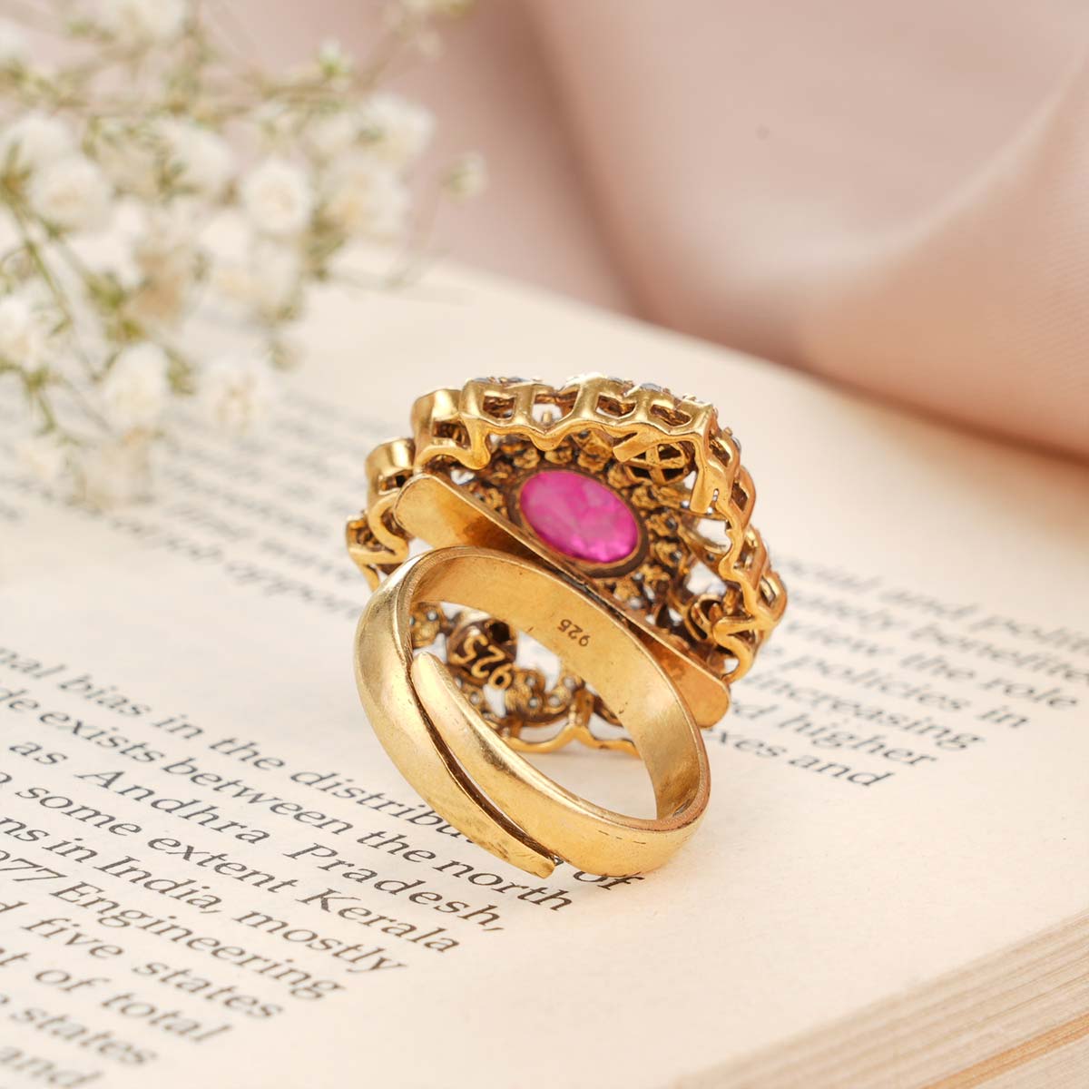 92.5 Silver, Victorian Ring studded with Gem Stones.