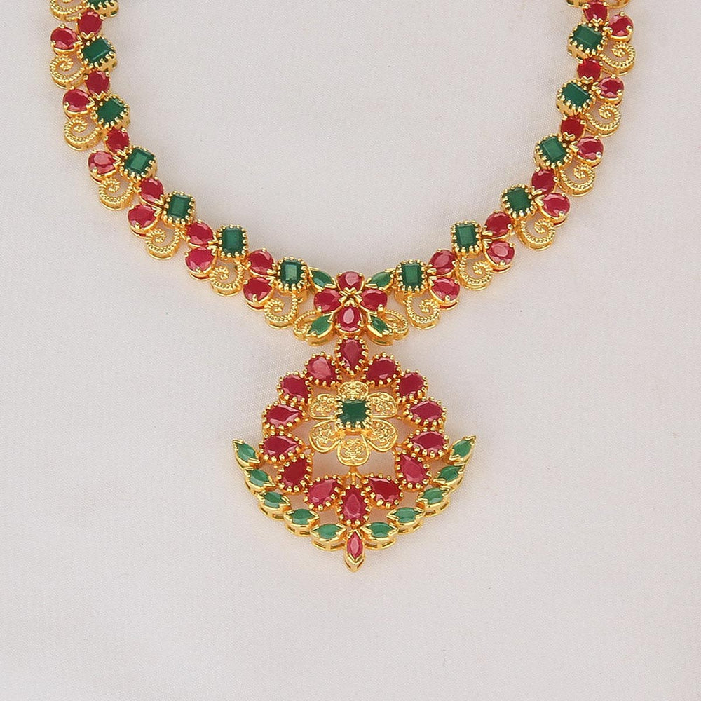 Buy Gold Plated Silver Short Necklace | Silver Short Necklace Set Online