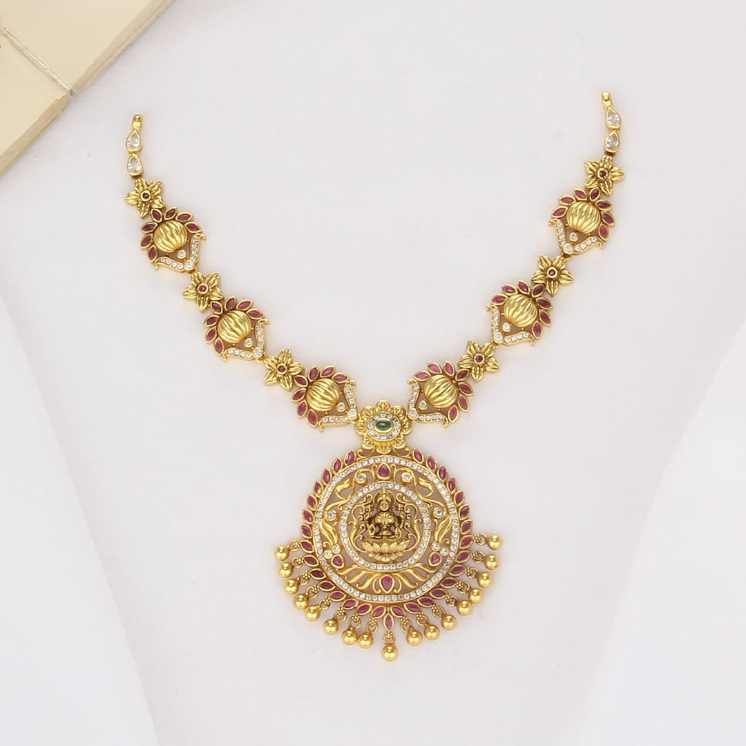 Buy Gold Plated Silver Short Necklace | Silver Short Necklace Set Online