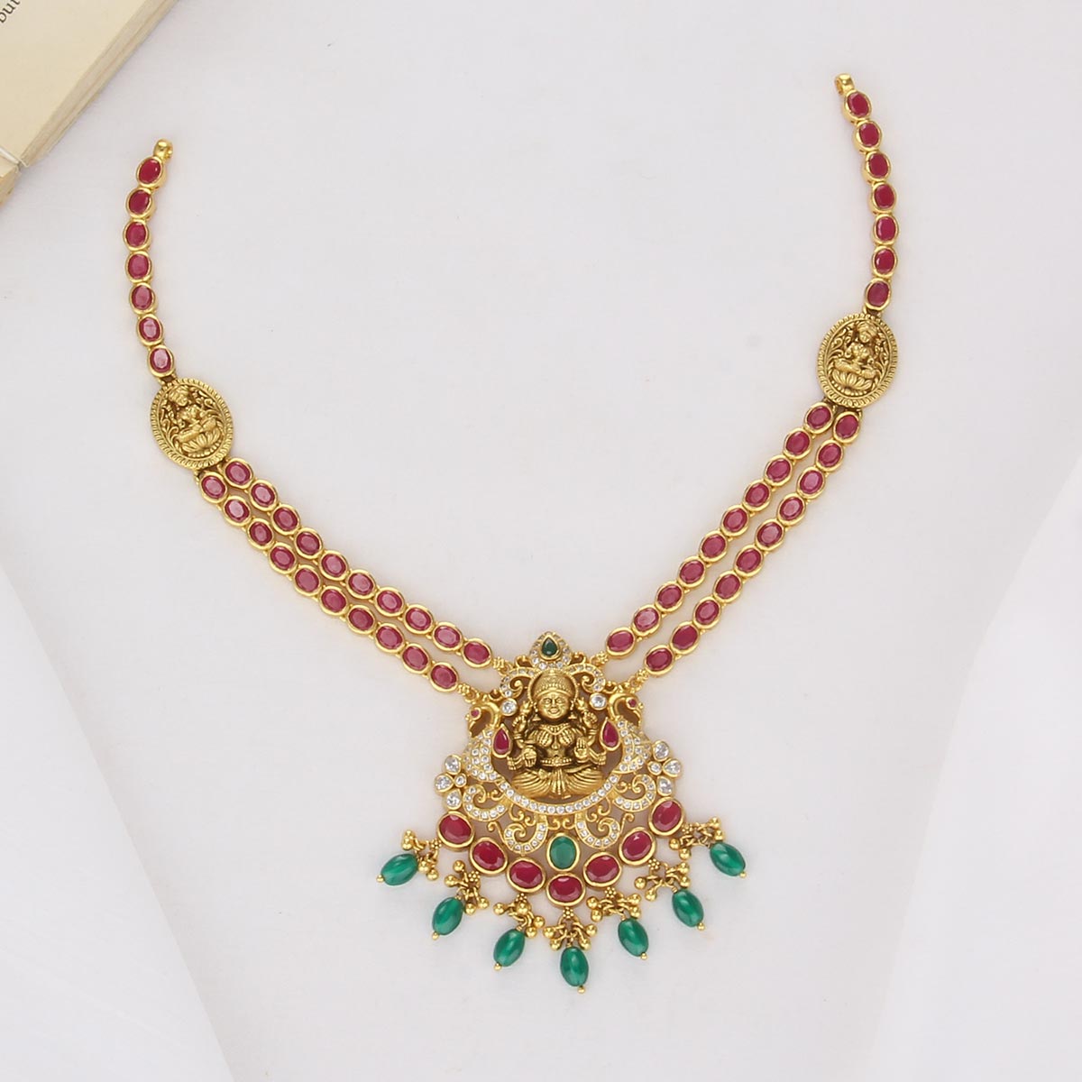 Elevate your style with this Majestic Look Nagas necklace. Crafted from 92.5 Silver and 24kt Gold Plated, this set boasts exquisite semi-precious stones for a dazzling effect.