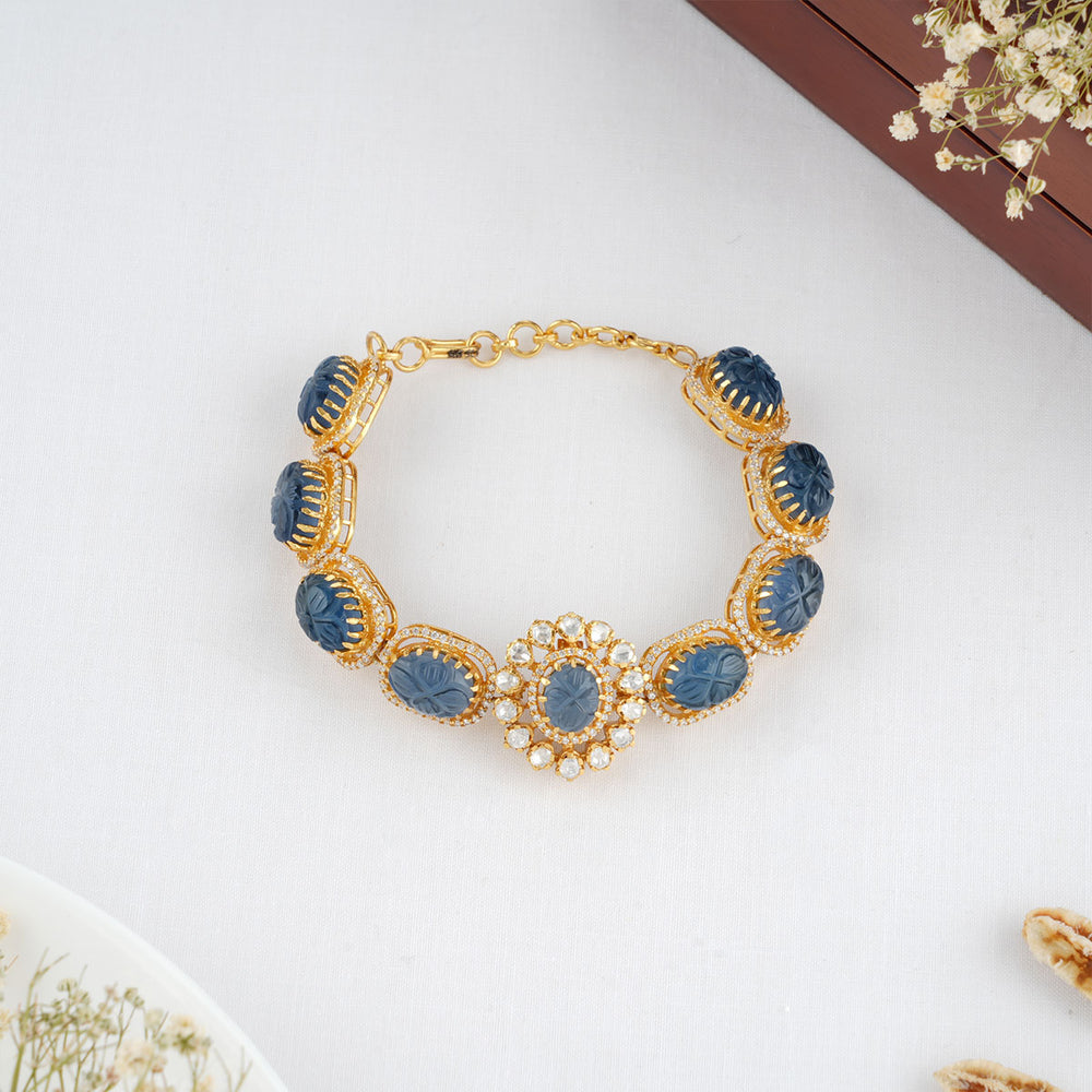 Gold Plated Silver Stone Bracelet For Men| Silver Bracelet Collections Online