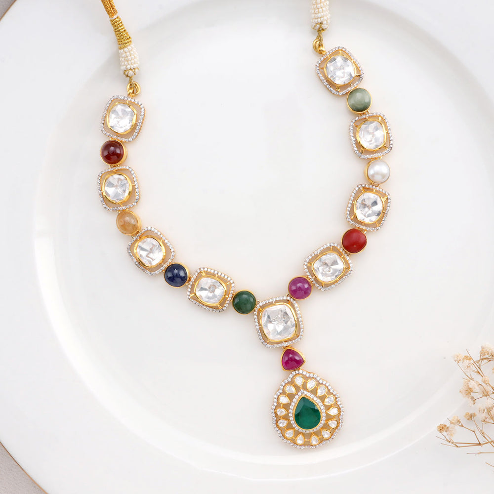 Gold Plated Silver Stone Necklace | Gold Plated Silver Choker Necklace