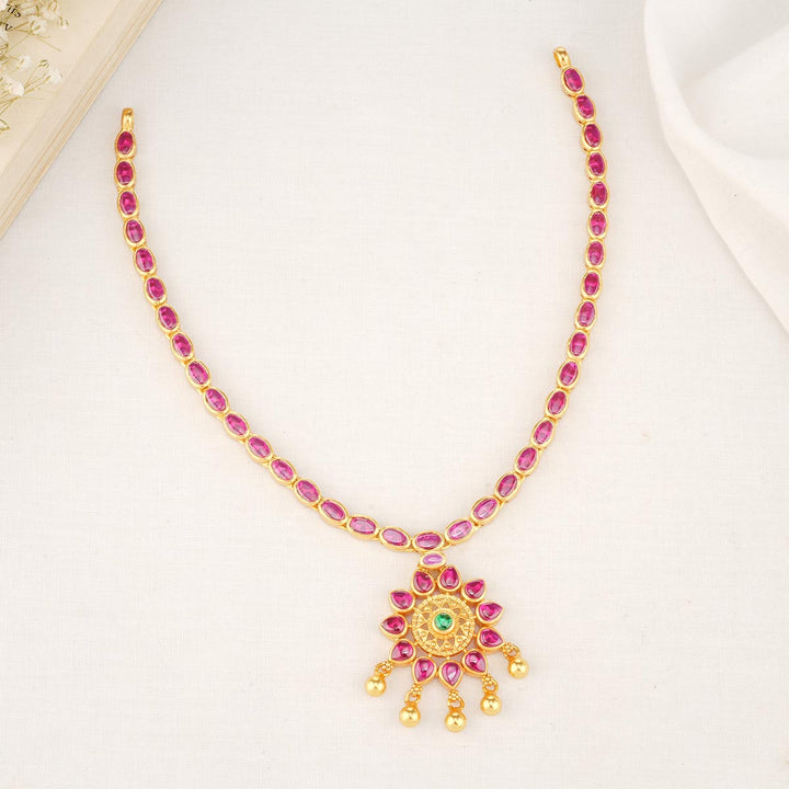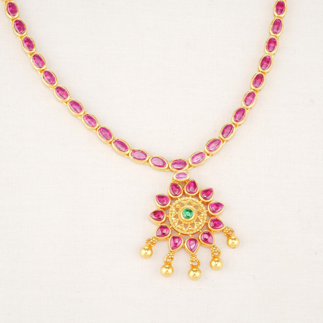 This 92.5 Silver, 24 kt gold-plated stylish Necklace is studded with semi-precious stones to make a stunning statement. Perfect for any special occasion.