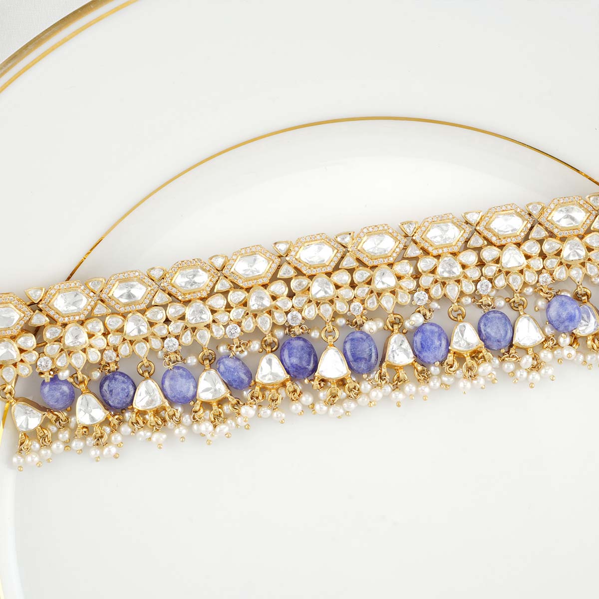 92.5 Silver, 24kt Gold Plated Choker Studded with Moissanite stones.