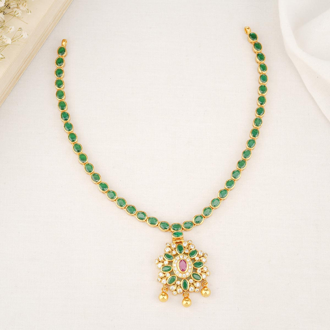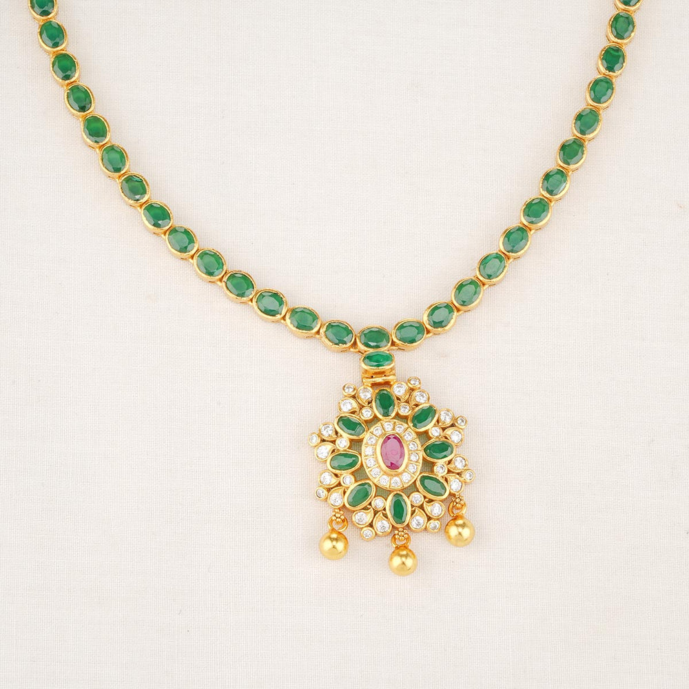 This set of Majestic Look necklaces is crafted from 92.5 Silver, 24kt Gold Plated, and is studded with semi-precious stones for a truly dazzling effect. Unparalleled in design and style, this exquisite set makes a grand statement.