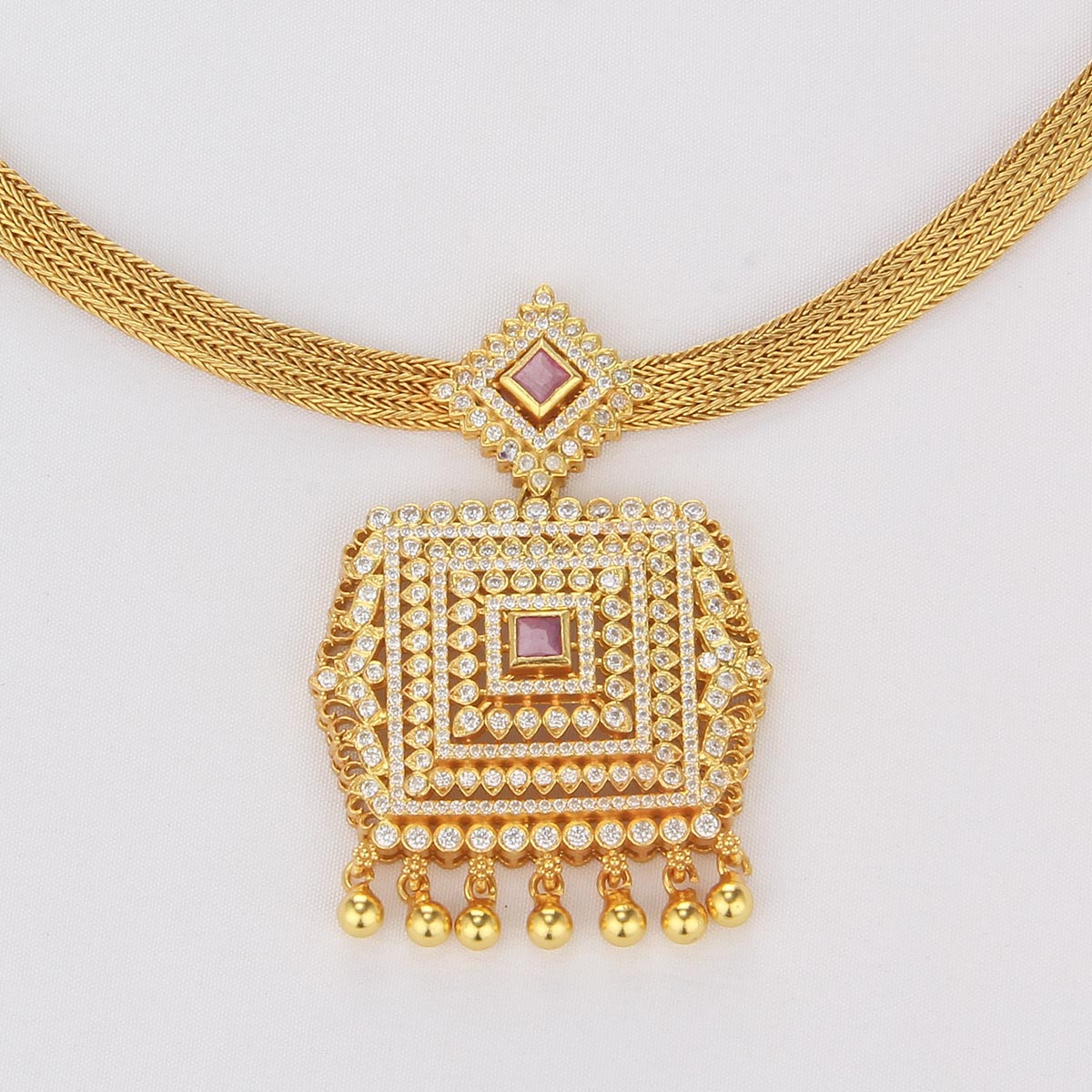 This necklace is crafted from 92.5 Silver and features 24-karat gold plating as well as semiprecious stones.