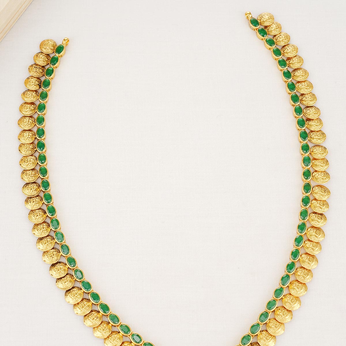 This stylish 92.5 Silver, 24 kt gold-plated Necklace is studded with semi-precious stones to make a stunning statement. It is perfect for any special occasion.