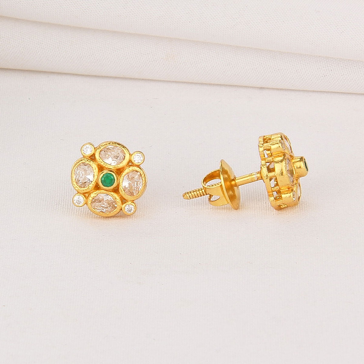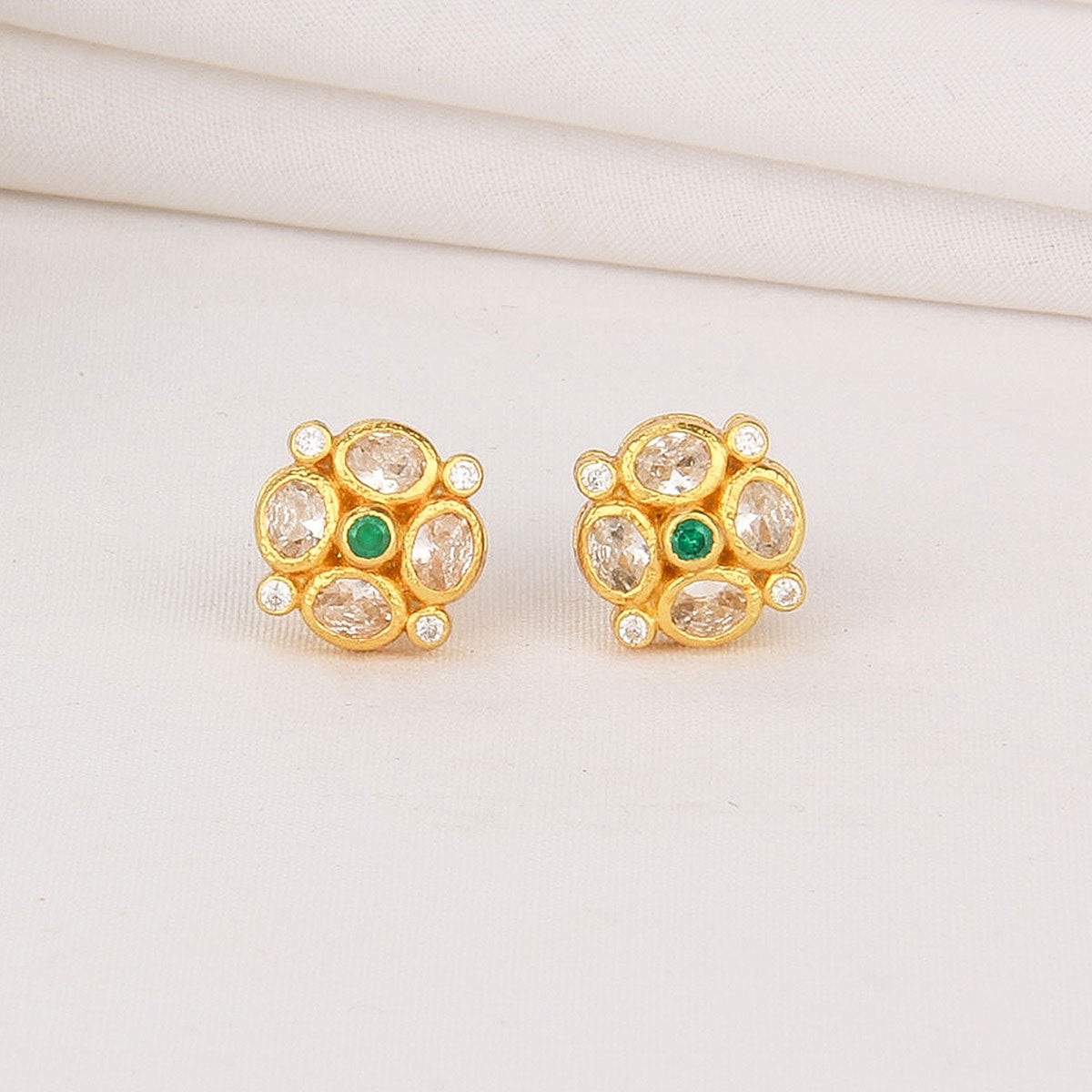 Fabricated from 92.5 silver and 24-karat gold plating, these earrings are adorned with semi-precious stones.