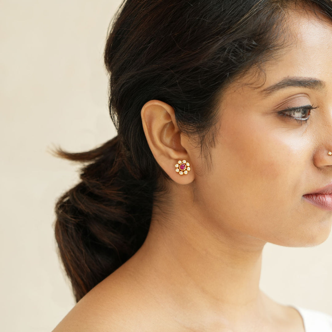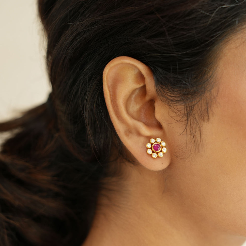 This 92.5 Silver, 24 kt gold-plated stylish Earring is studded with semi-precious stones to make a stunning statement. Perfect for both formal and casual occasions.