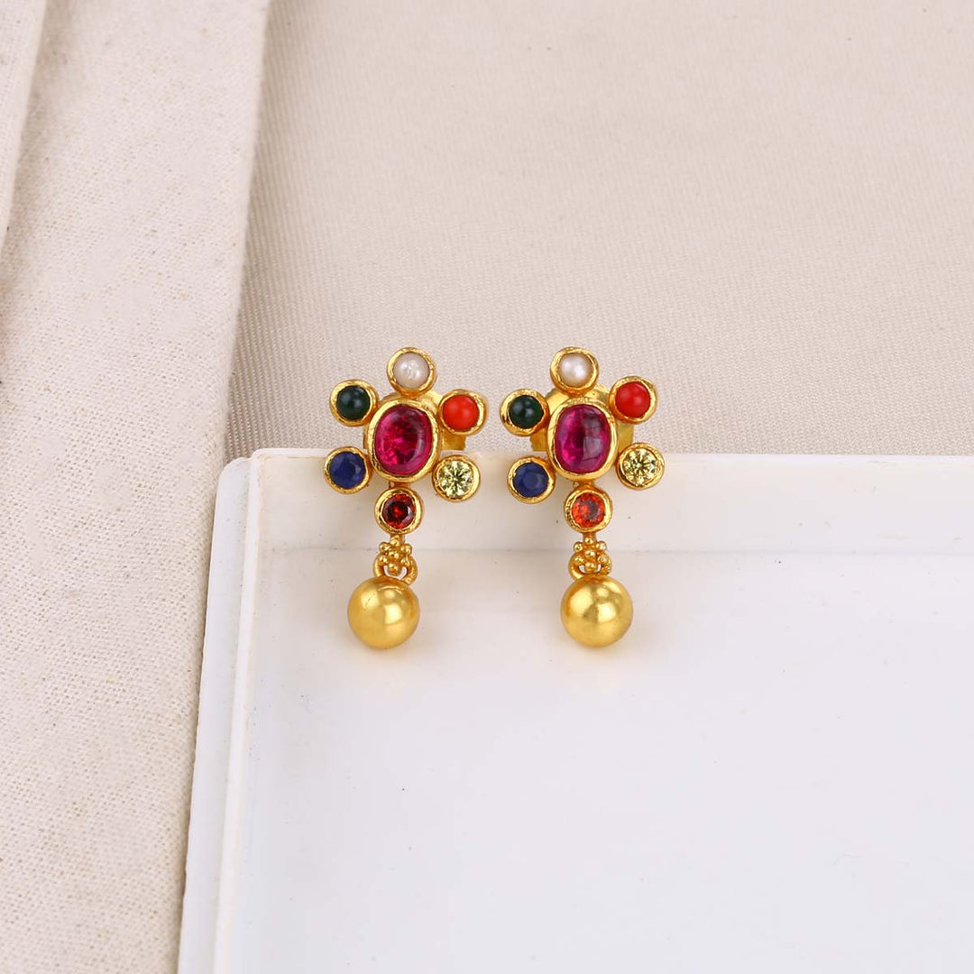 This 92.5 Silver, 24 kt gold-plated stylish Earring is studded with semi-precious stones to make a stunning statement. Perfect for both formal and casual occasions.