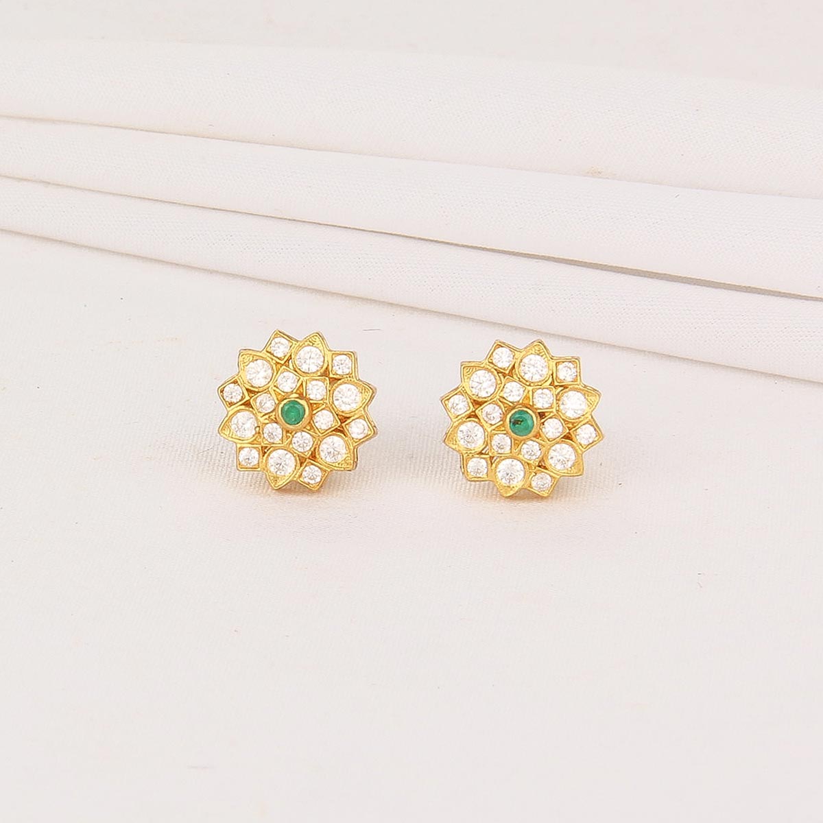 Fabricated from 92.5% sterling silver and 24-karat gold plating, these earrings are adorned with semi-precious stones.