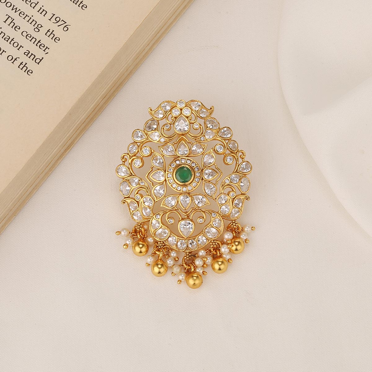 This 92.5 Silver, 24 kt gold-plated stylish Pendant is studded with semi-precious stones to make a stunning statement. Perfect for any special occasion.