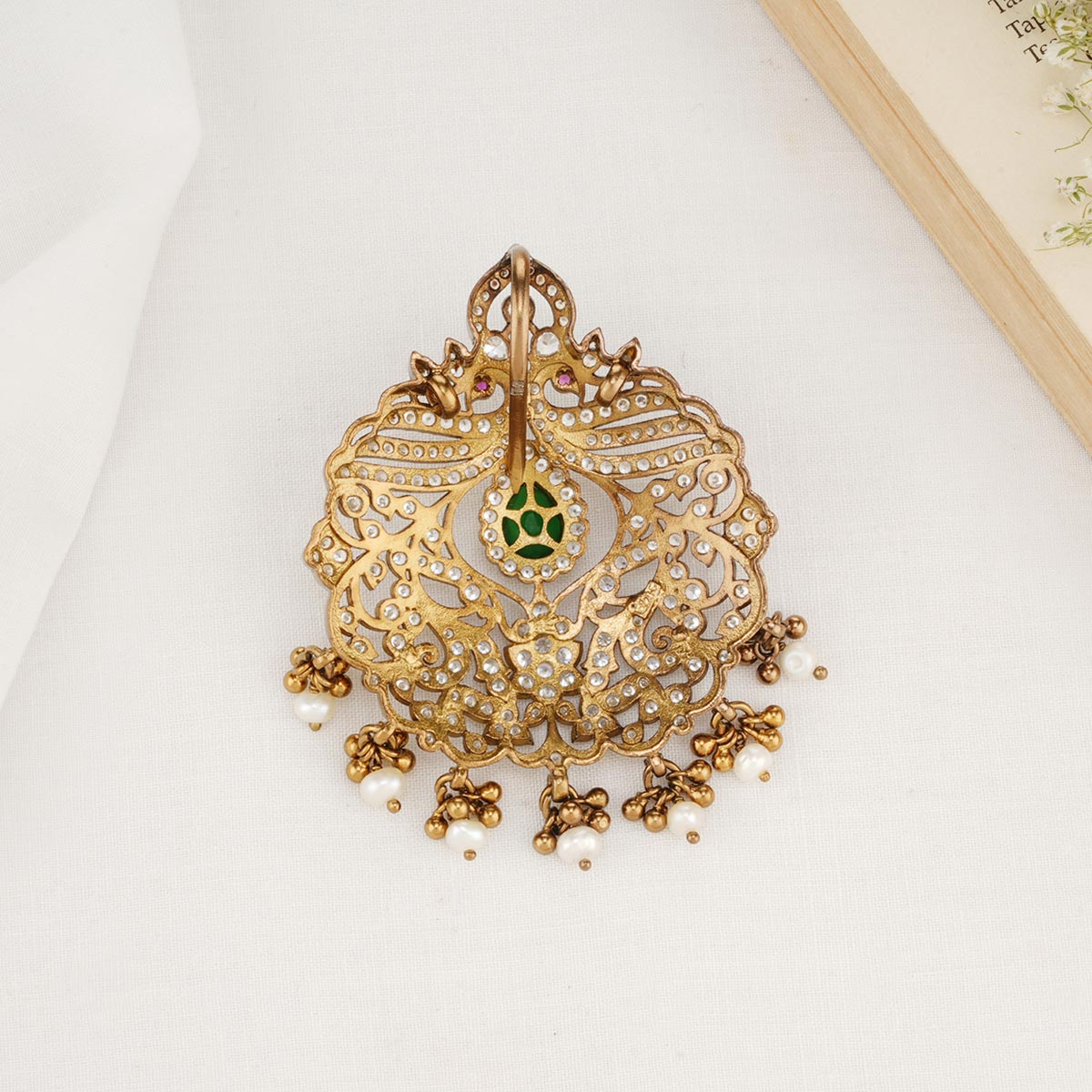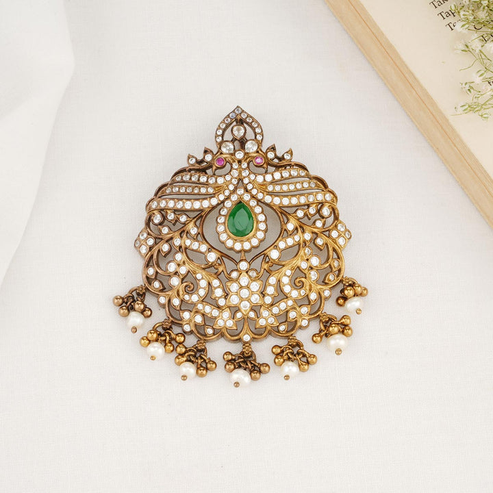 This 92.5 Silver, 24 kt gold-plated stylish Pendant is studded with semi-precious stones to make a stunning statement. Perfect for any special occasion.
