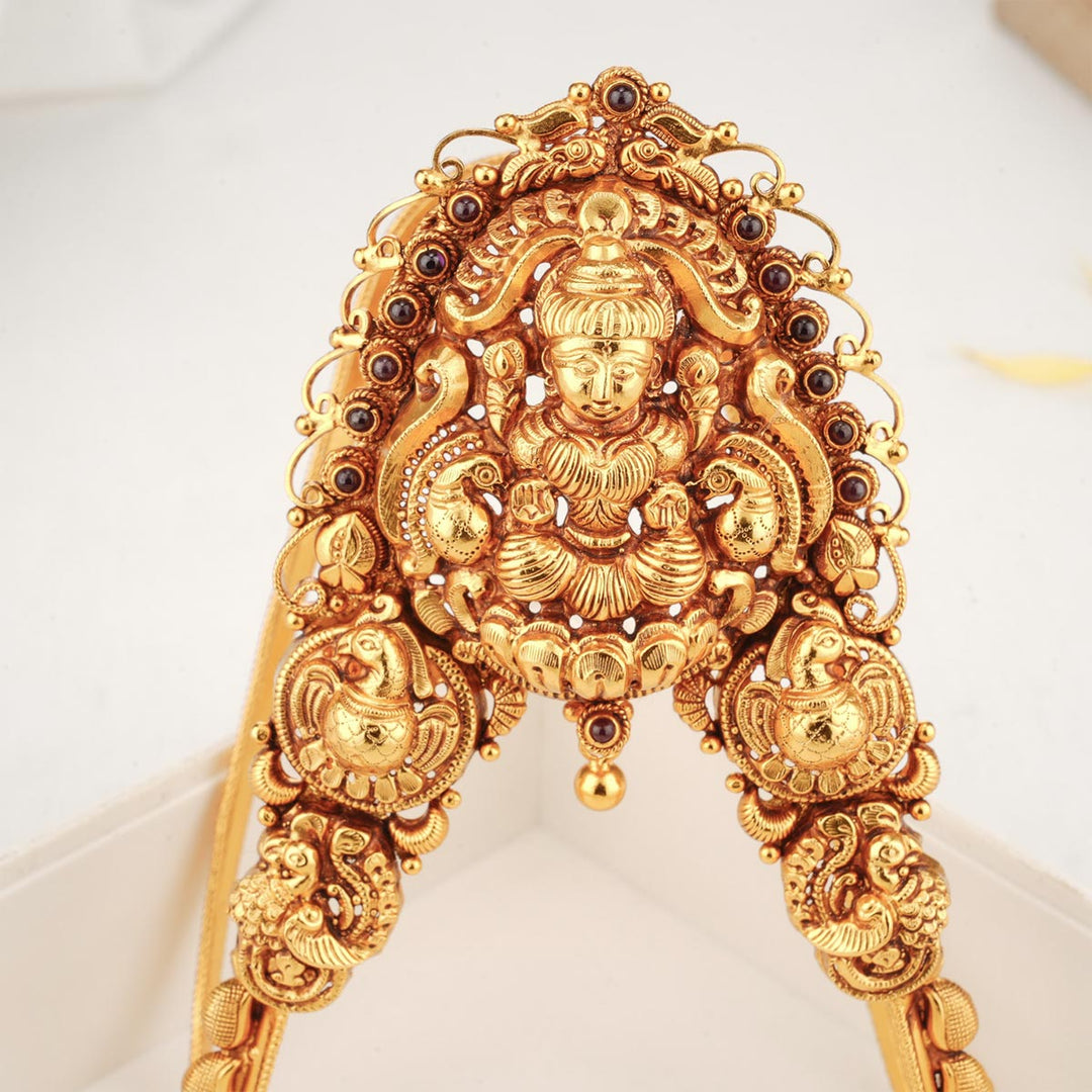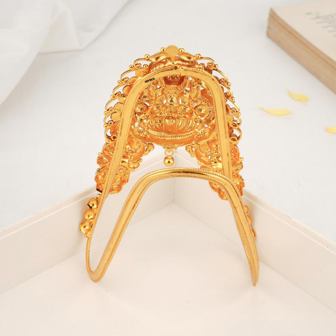 This Vanki is crafted with 92.5% silver, plated with 24-karat gold, and decorated with semi-precious stones.