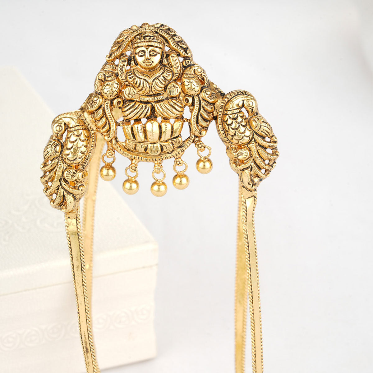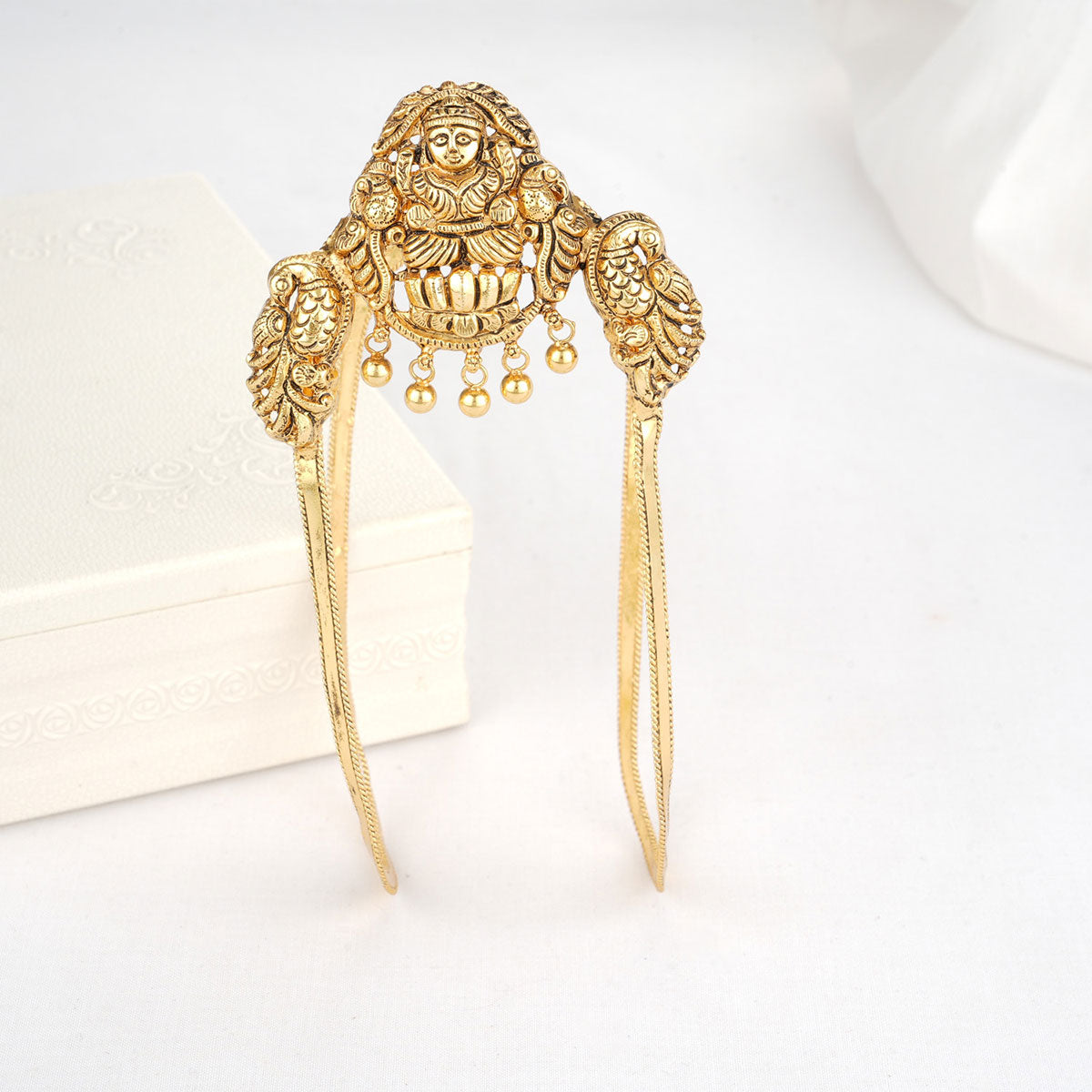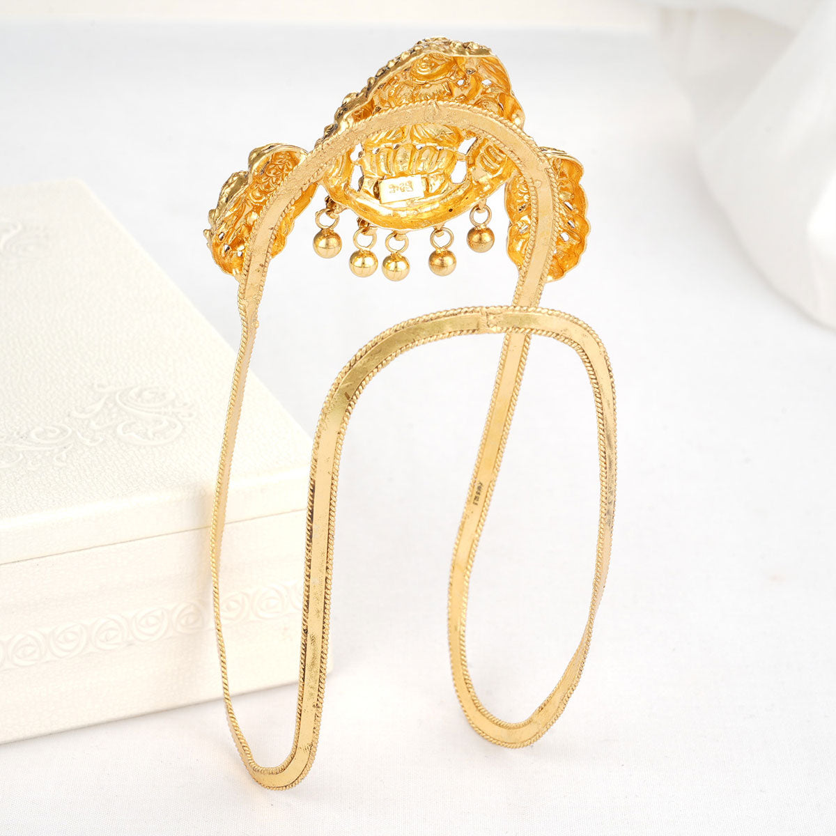 This Vanki is crafted with 92.5% silver, plated with 24-karat gold, and decorated with semi-precious stones.