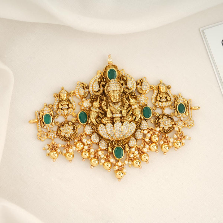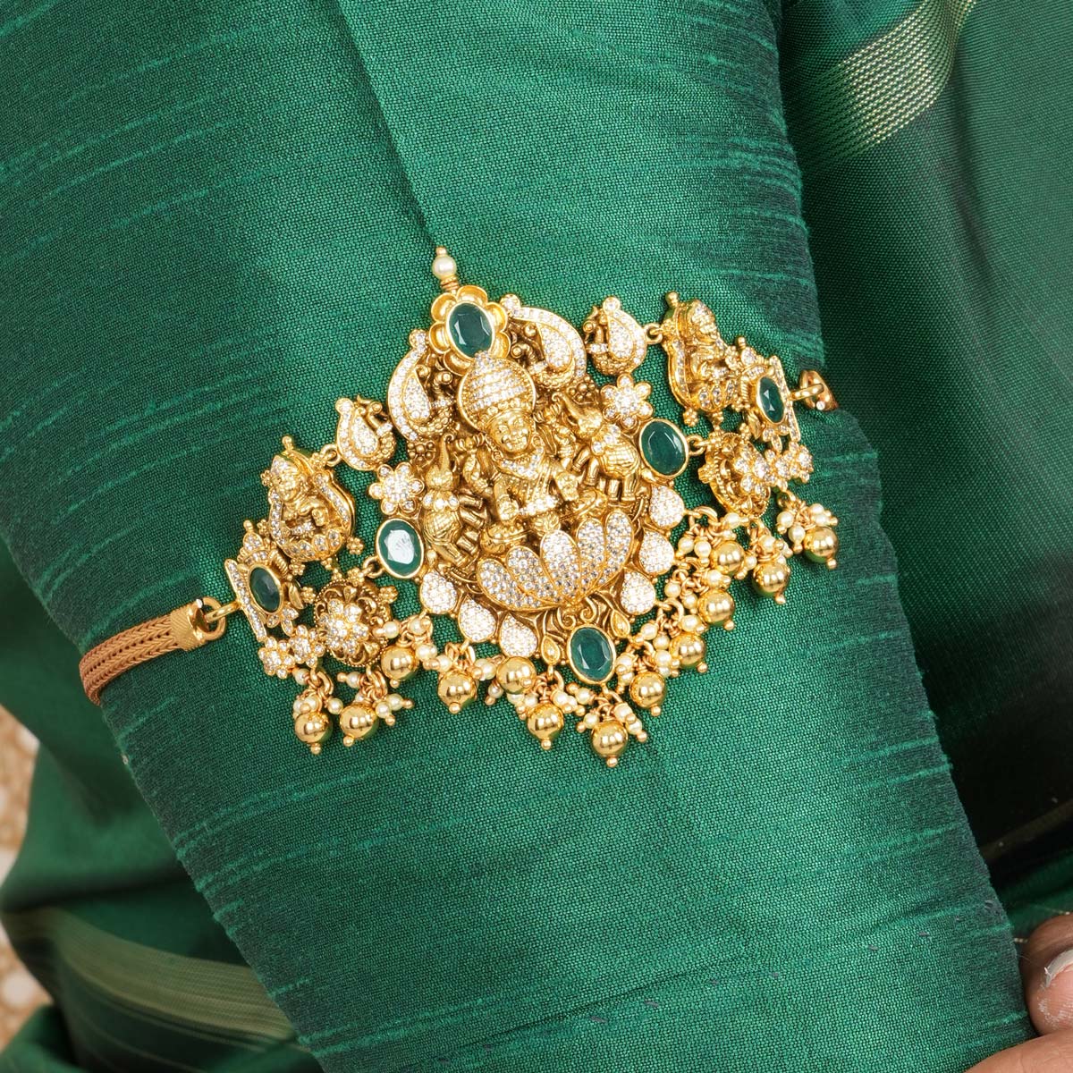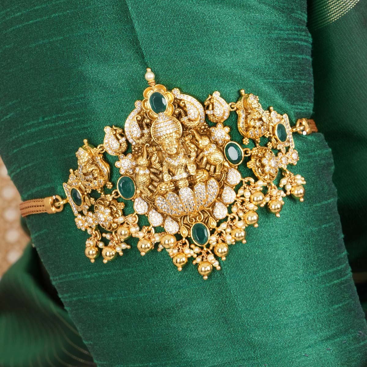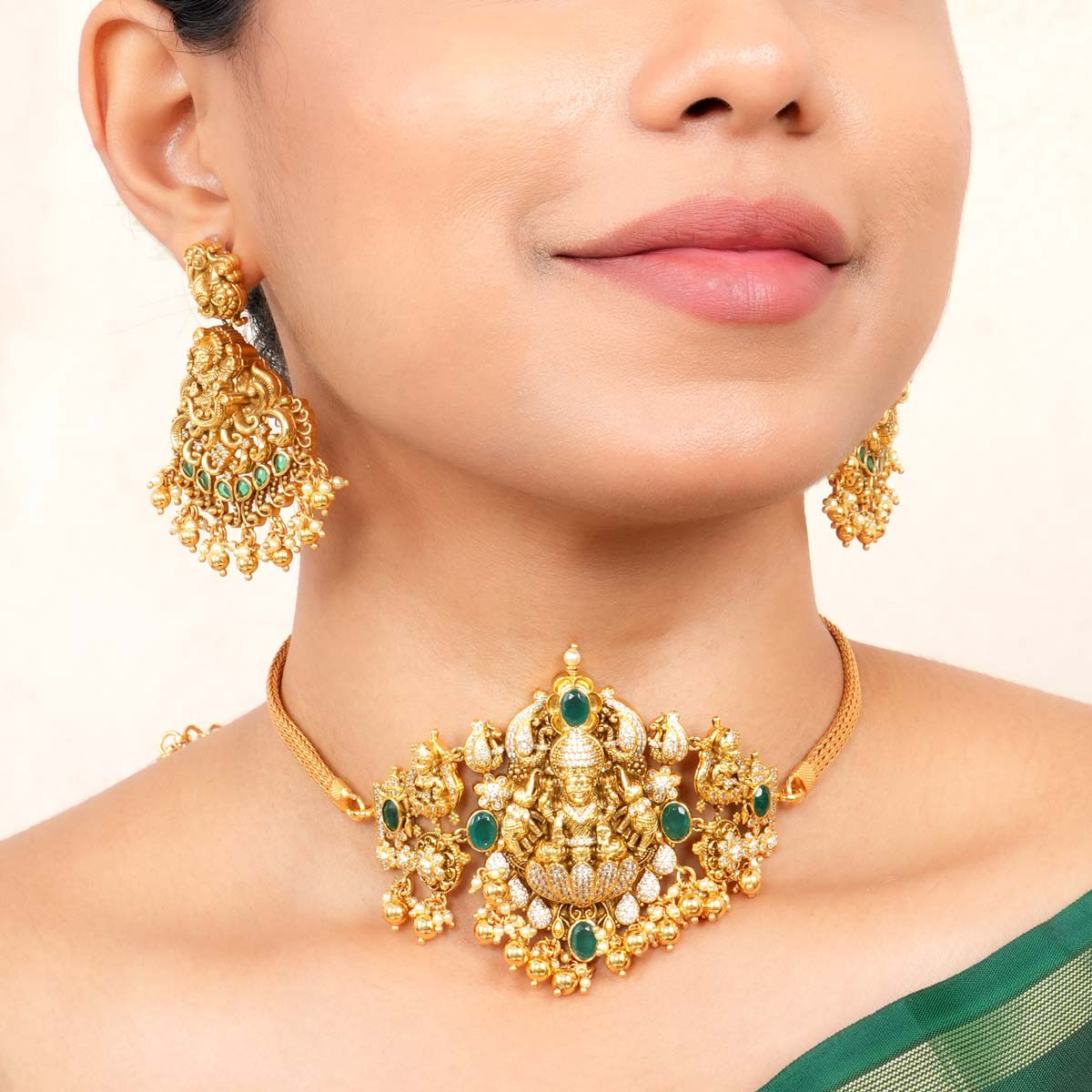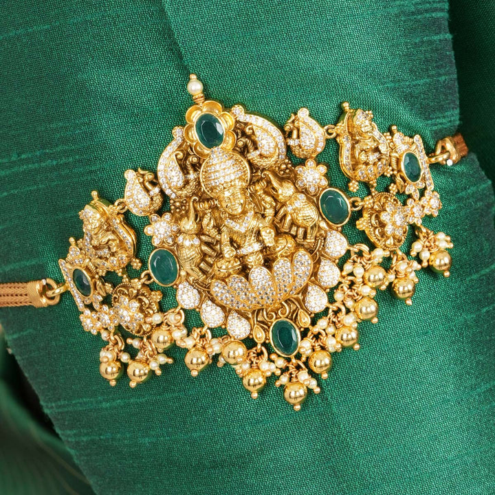 This Vanki features 92.5 silver and 24kt gold plating, with semi-precious stones studded in the design of a cum choker.