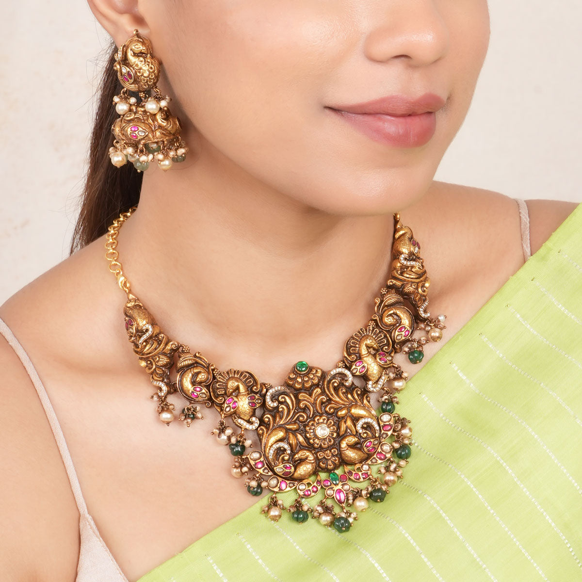 Handcrafted pure 92.5 silver gold plated deep nagas jewellery. This is a fusion of deep nagas and Kundan's work. It takes about 100 days to make this one-of-a-kind masterpiece. We are proud to say that we are the first brand in India to launch this collection.