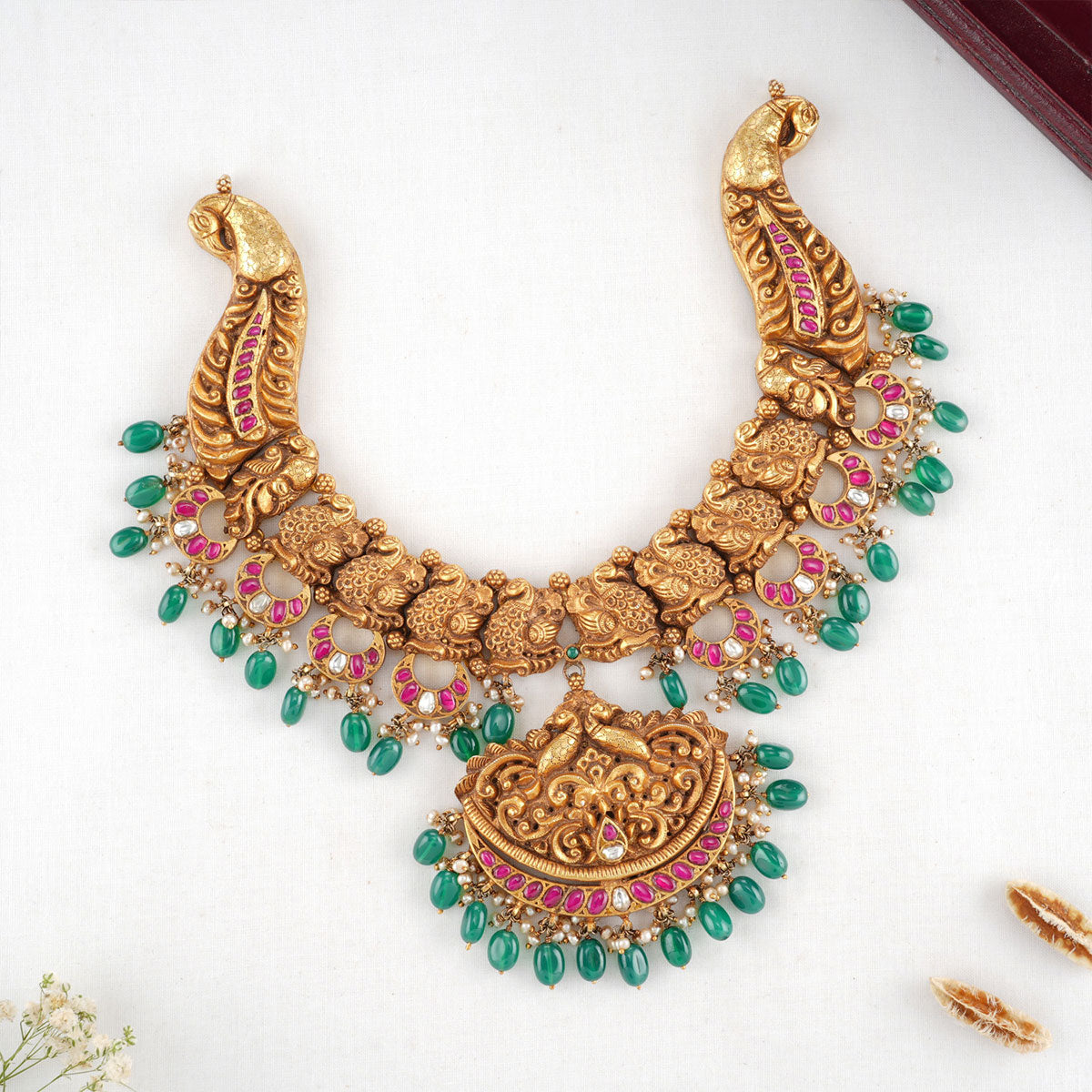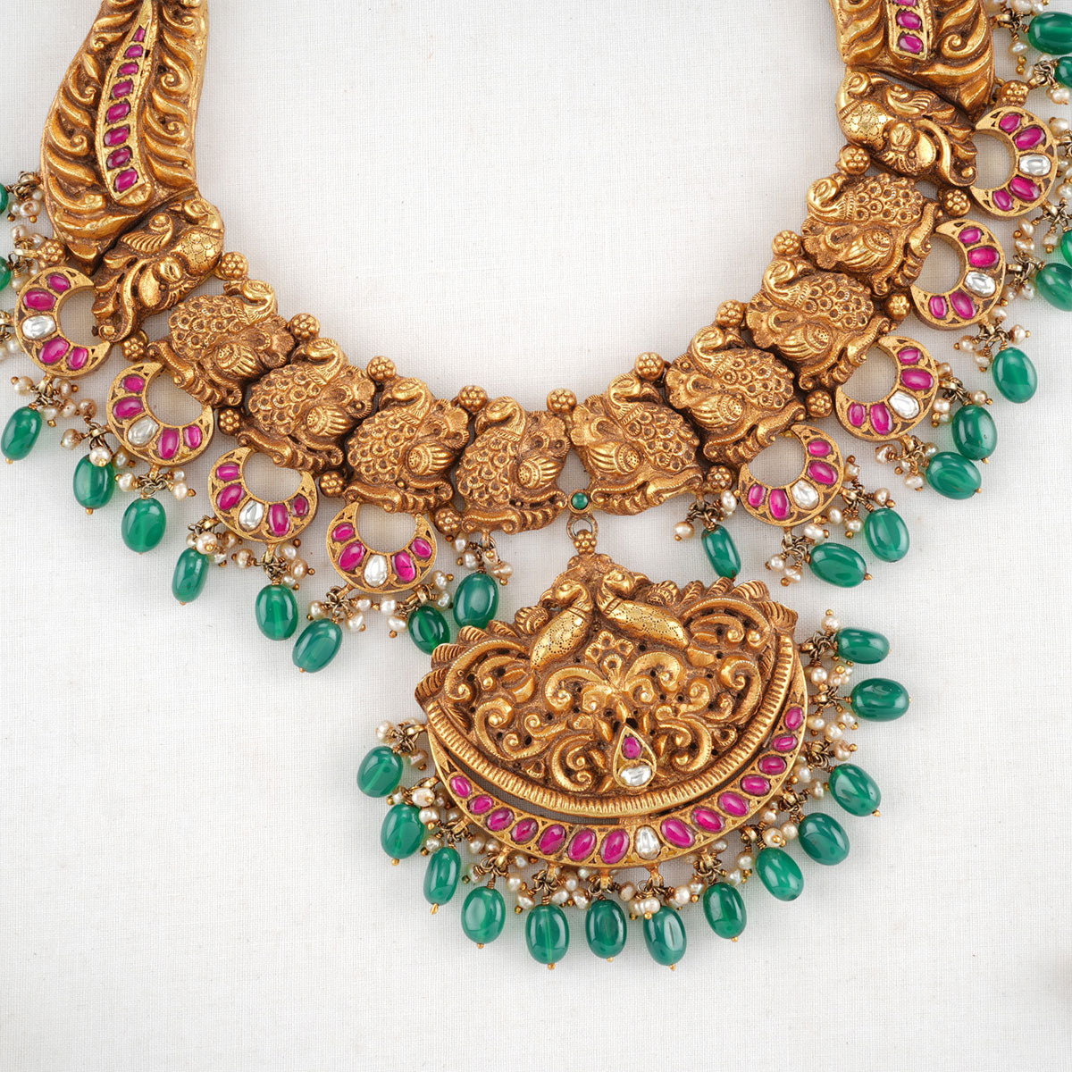 Handcrafted pure 92.5 silver gold plated deep nagas jewellery. This is a fusion of deep nagas and Kundan's work. It takes about 100 days to make this one-of-a-kind masterpiece. We are proud to say that we are the first brand in India to launch this collection.