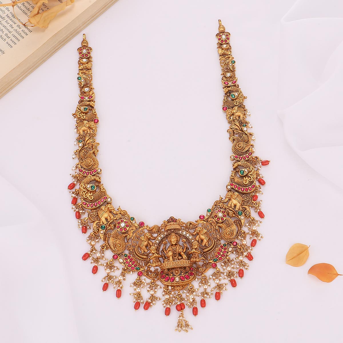 Elevate your style with this Majestic Look Nagas necklace. Crafted from 92.5 Silver and 24kt gold-plated, this set boasts exquisite semi-precious stones for a dazzling effect.