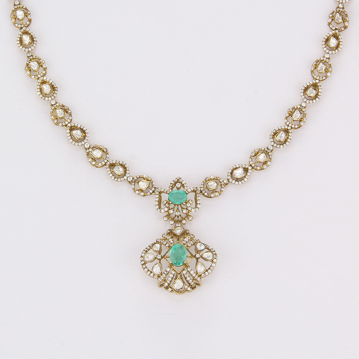 92.5 Silver, Victorian Necklace studded with Gem Stones.