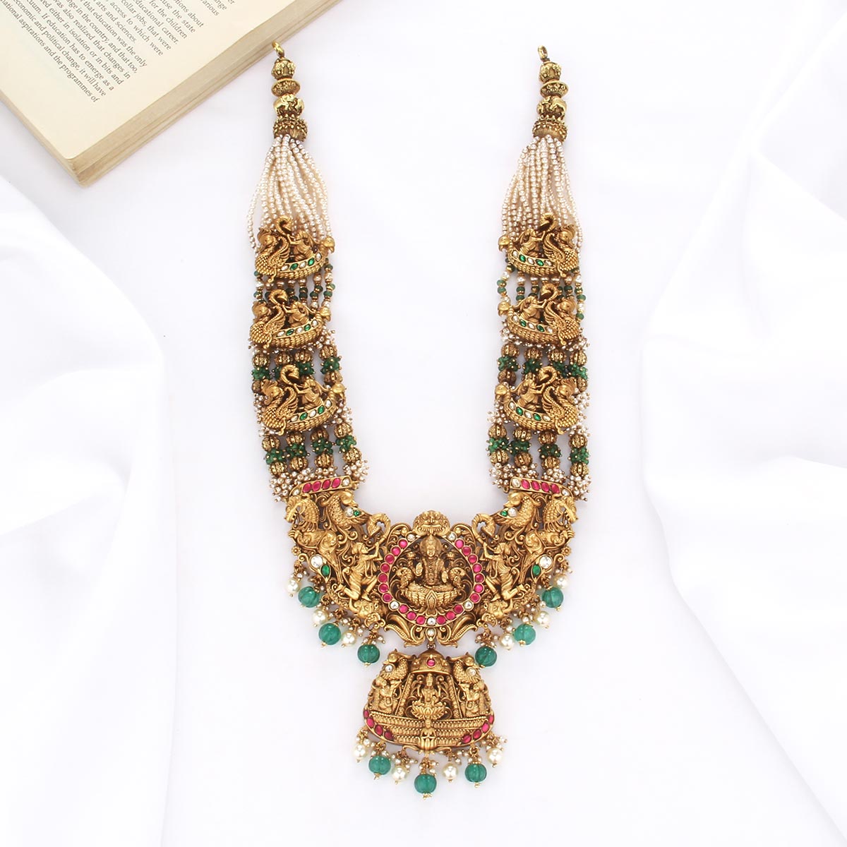 Elevate your style with this Majestic Look Nagas necklace. Crafted from 92.5 Silver and 24kt gold-plated, this set boasts exquisite semi-precious stones for a dazzling effect.